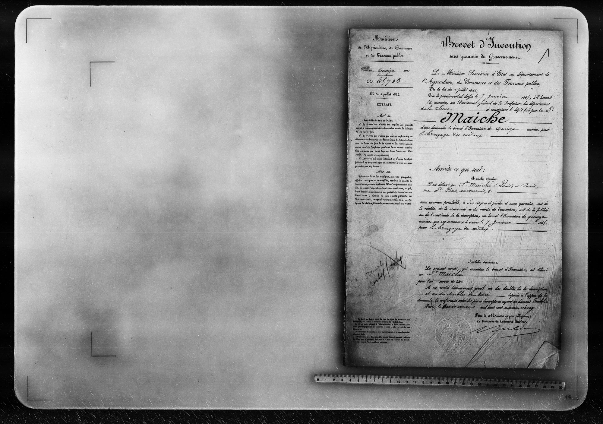 - Brevet d'invention de 15 ans