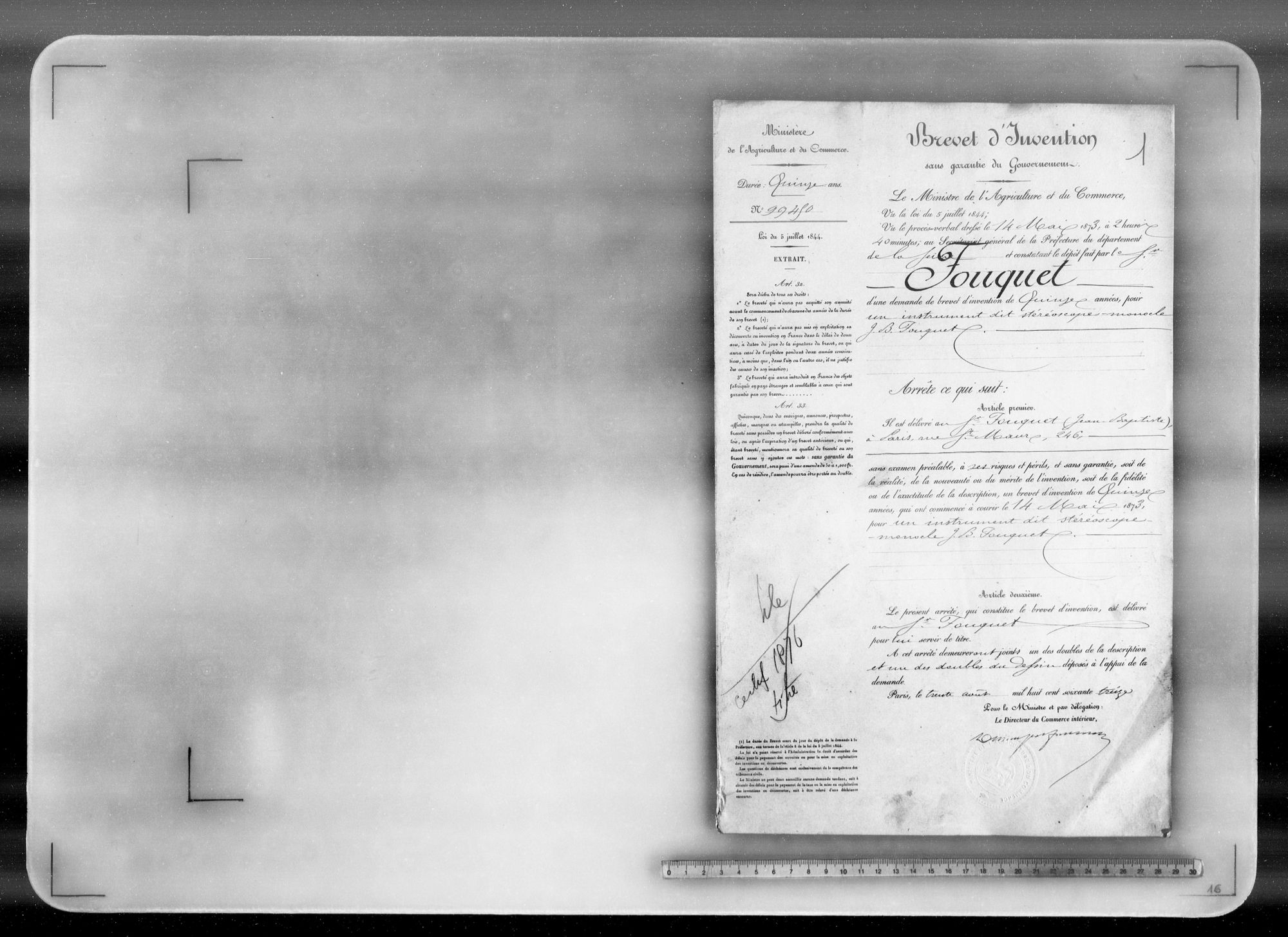 - Brevet d'invention de 15 ans
