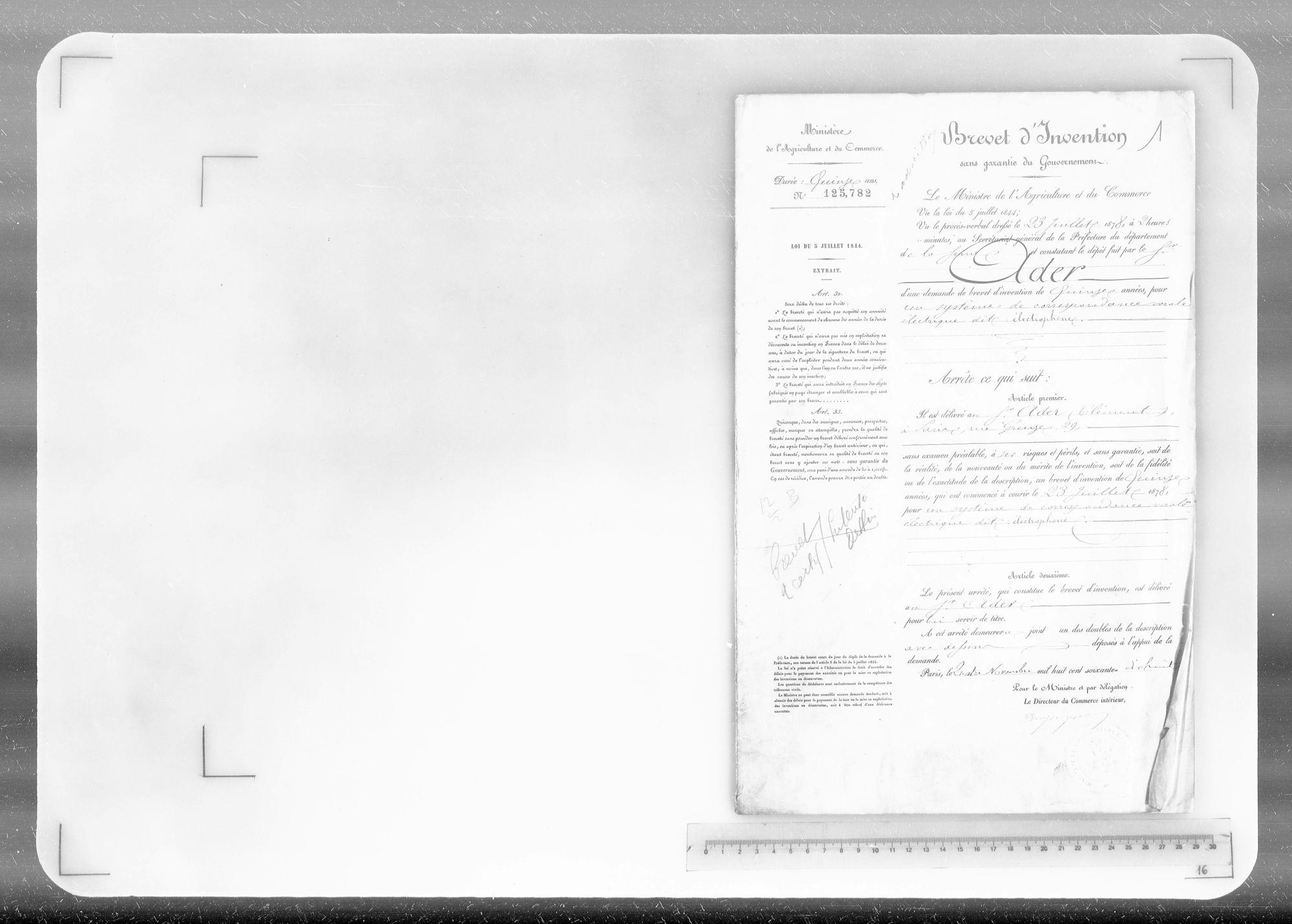 - Brevet d'invention de 15 ans