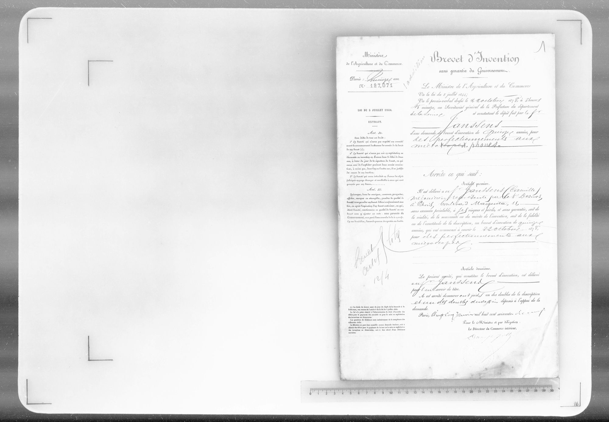 - Brevet d'invention de 15 ans
