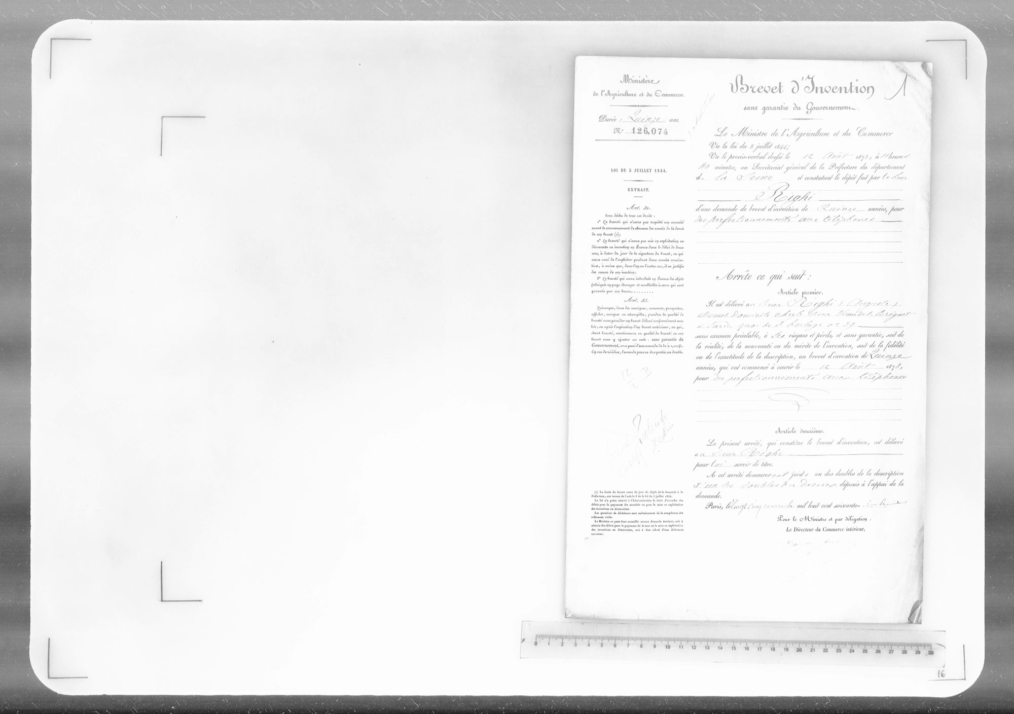 - Brevet d'invention de 15 ans
