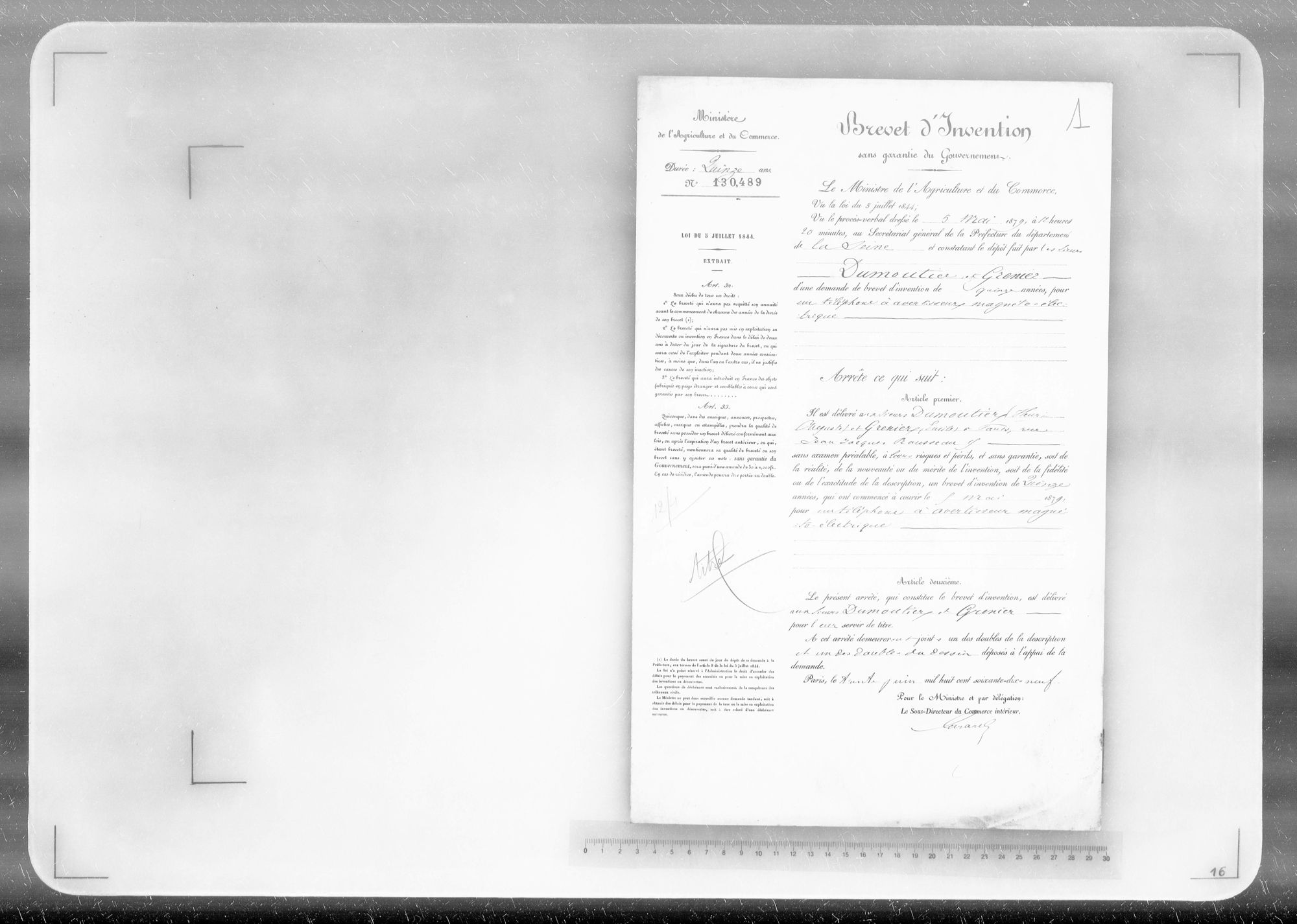 - Brevet d'invention de 15 ans