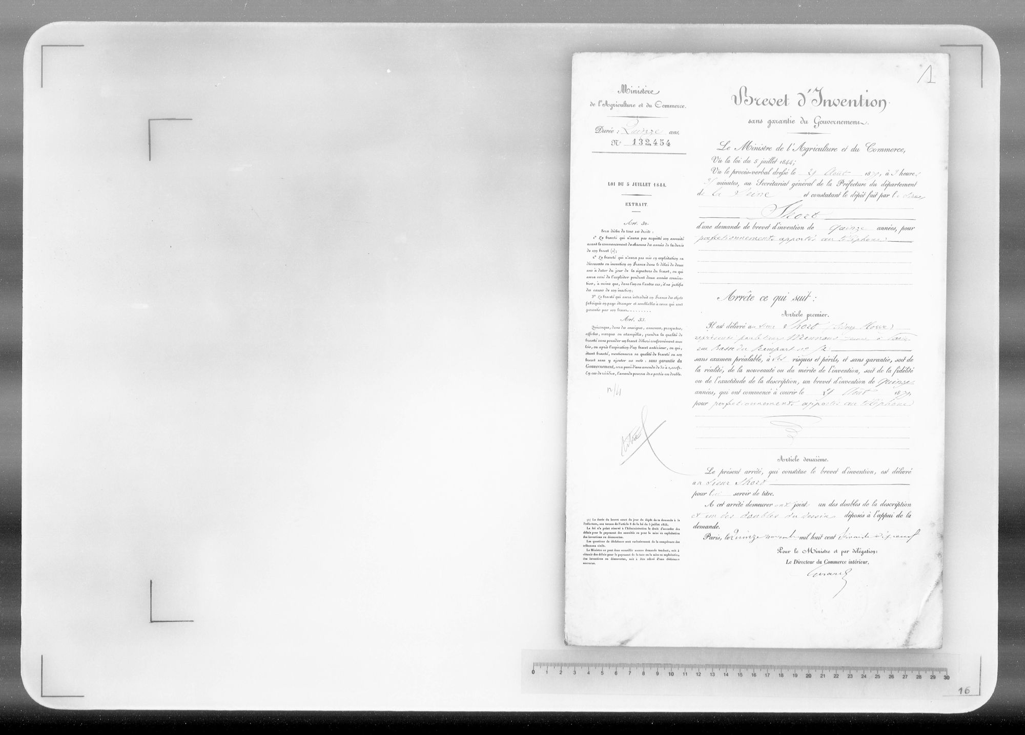 - Brevet d'invention de 15 ans