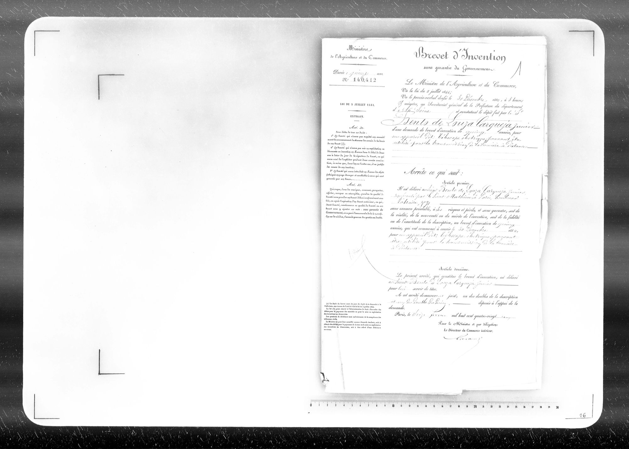 - Brevet d'invention de 15 ans