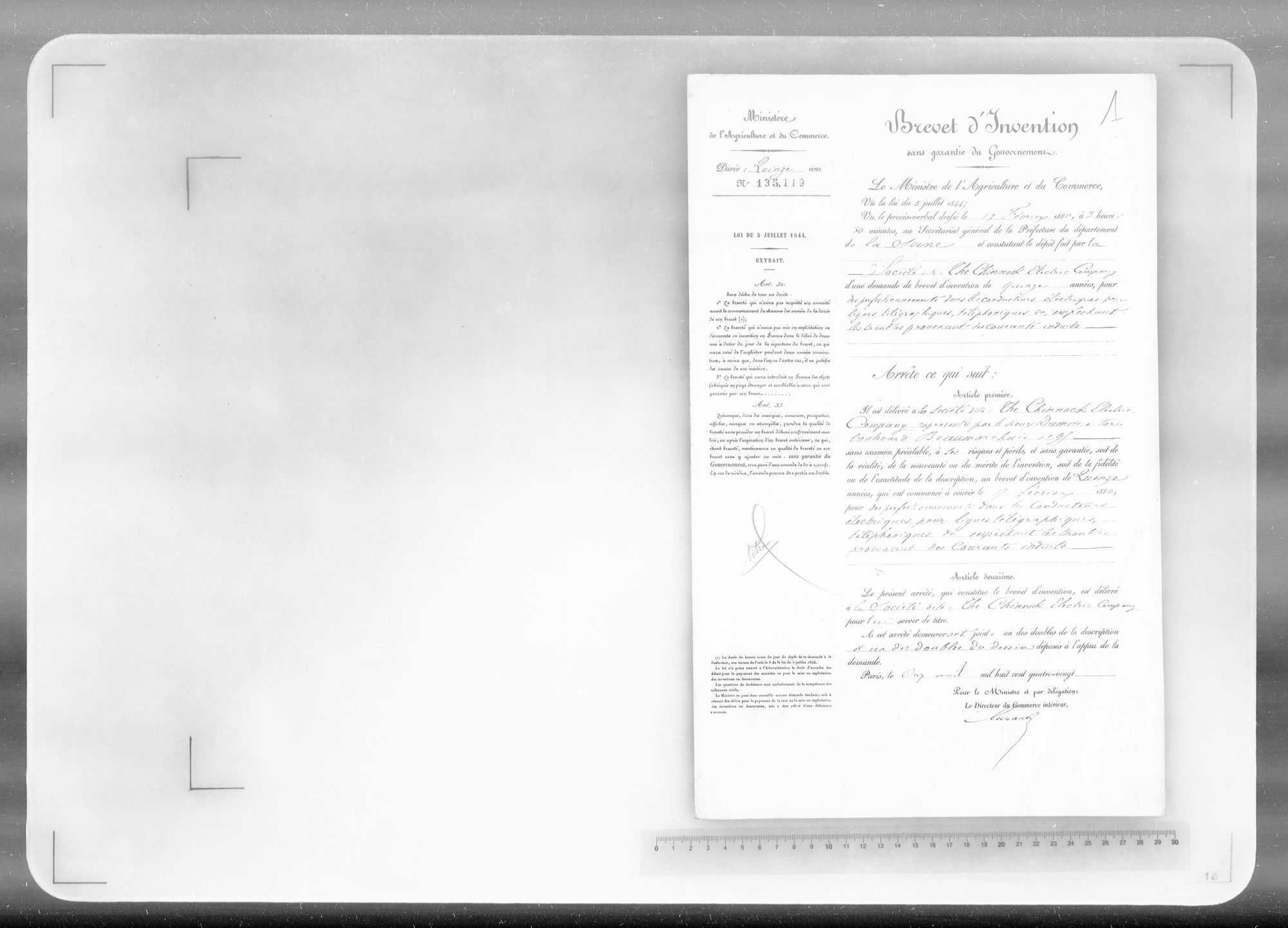 - Brevet d'invention de 15 ans