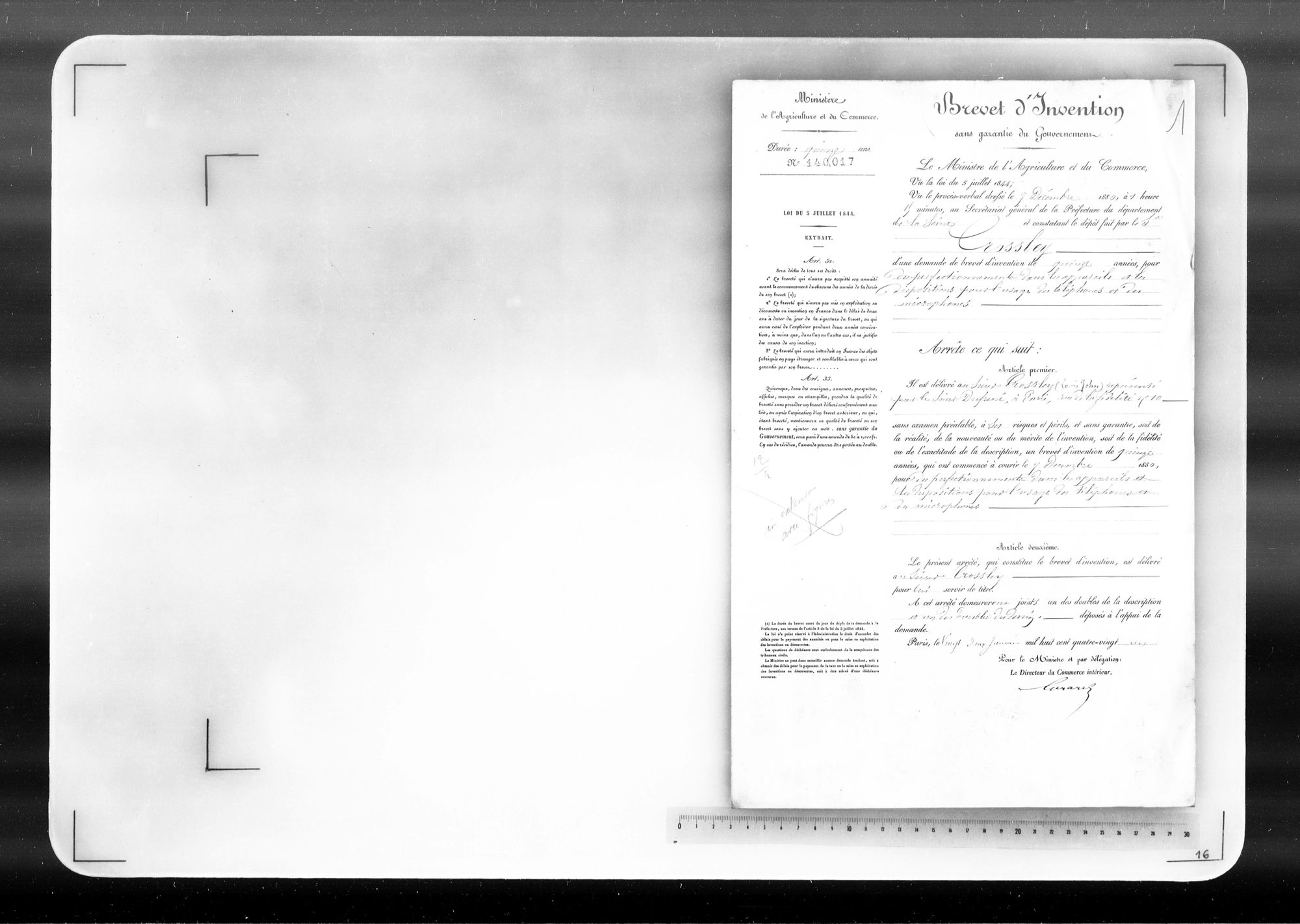 - Brevet d'invention de 15 ans