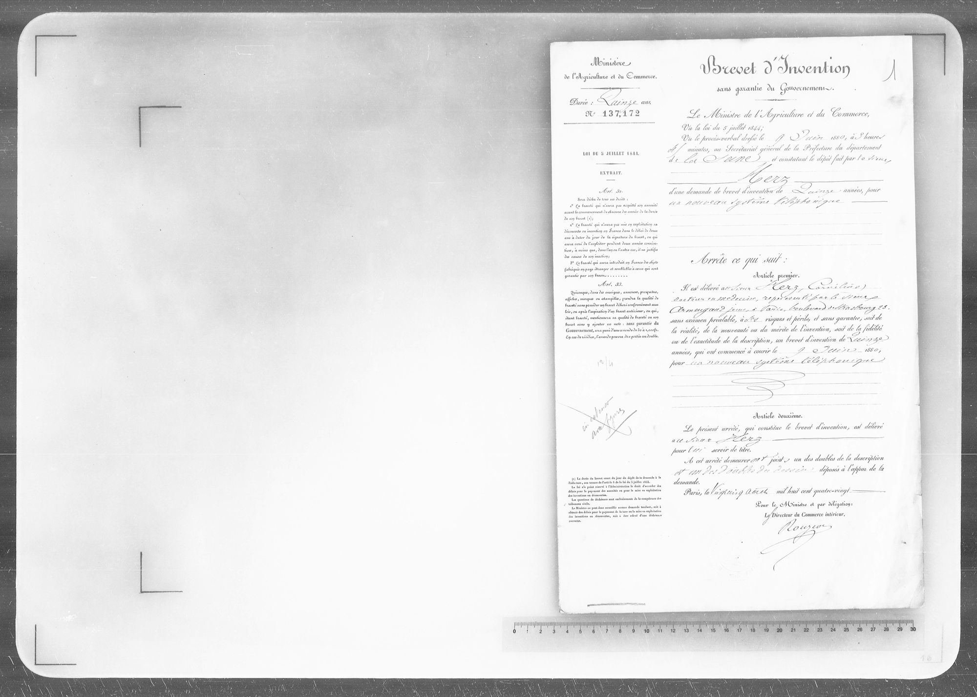 - Brevet d'invention de 15 ans