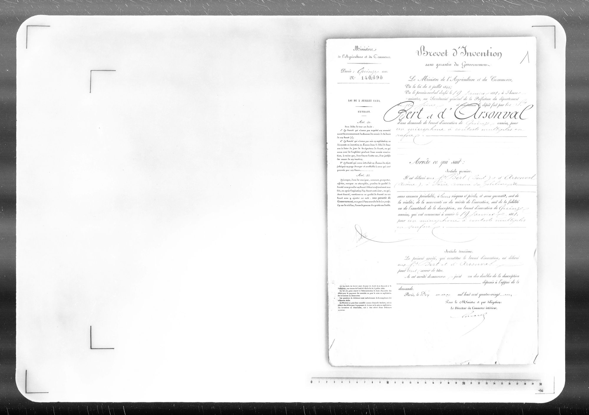 - Brevet d'invention de 15 ans