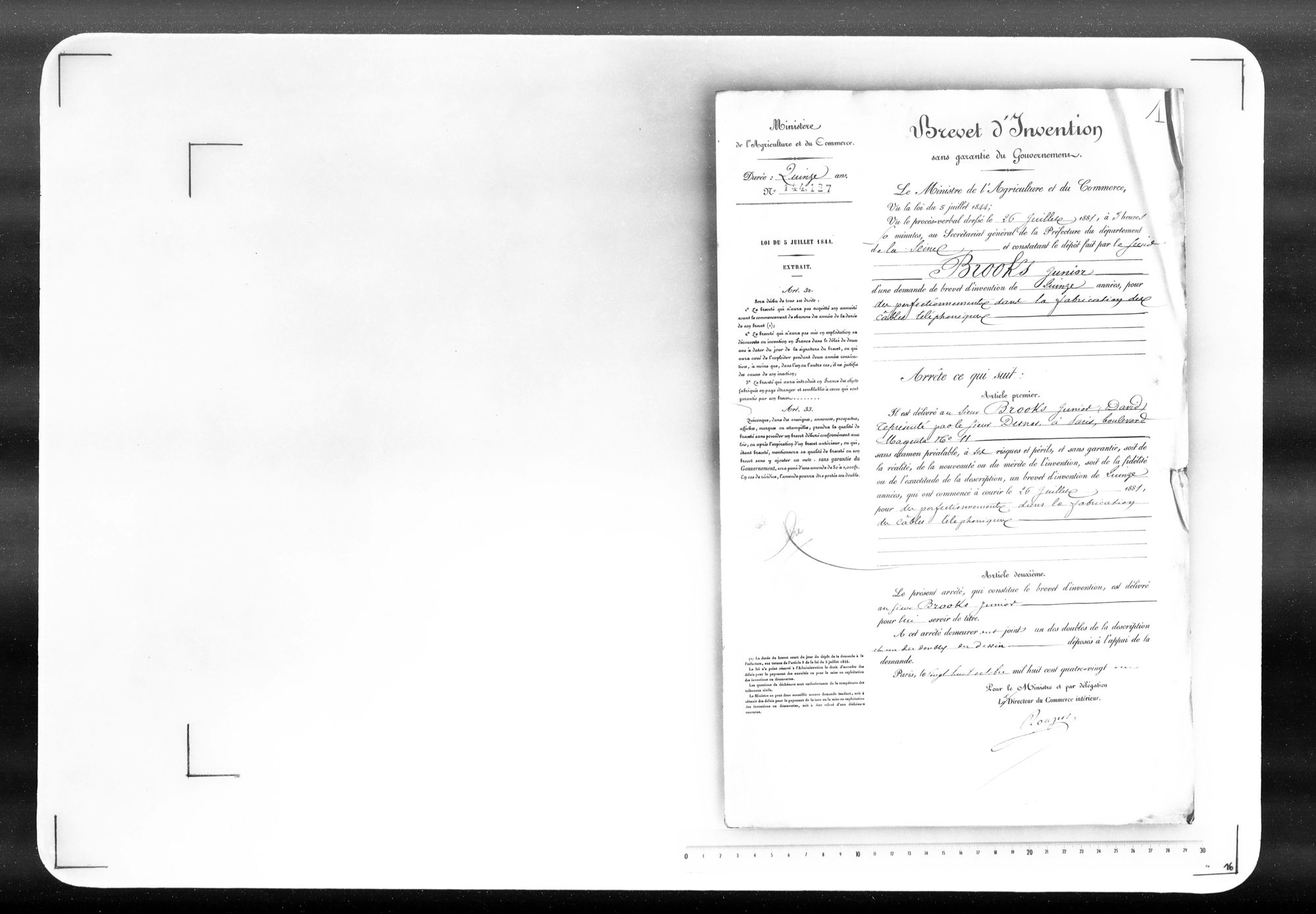 - Brevet d'invention de 15 ans