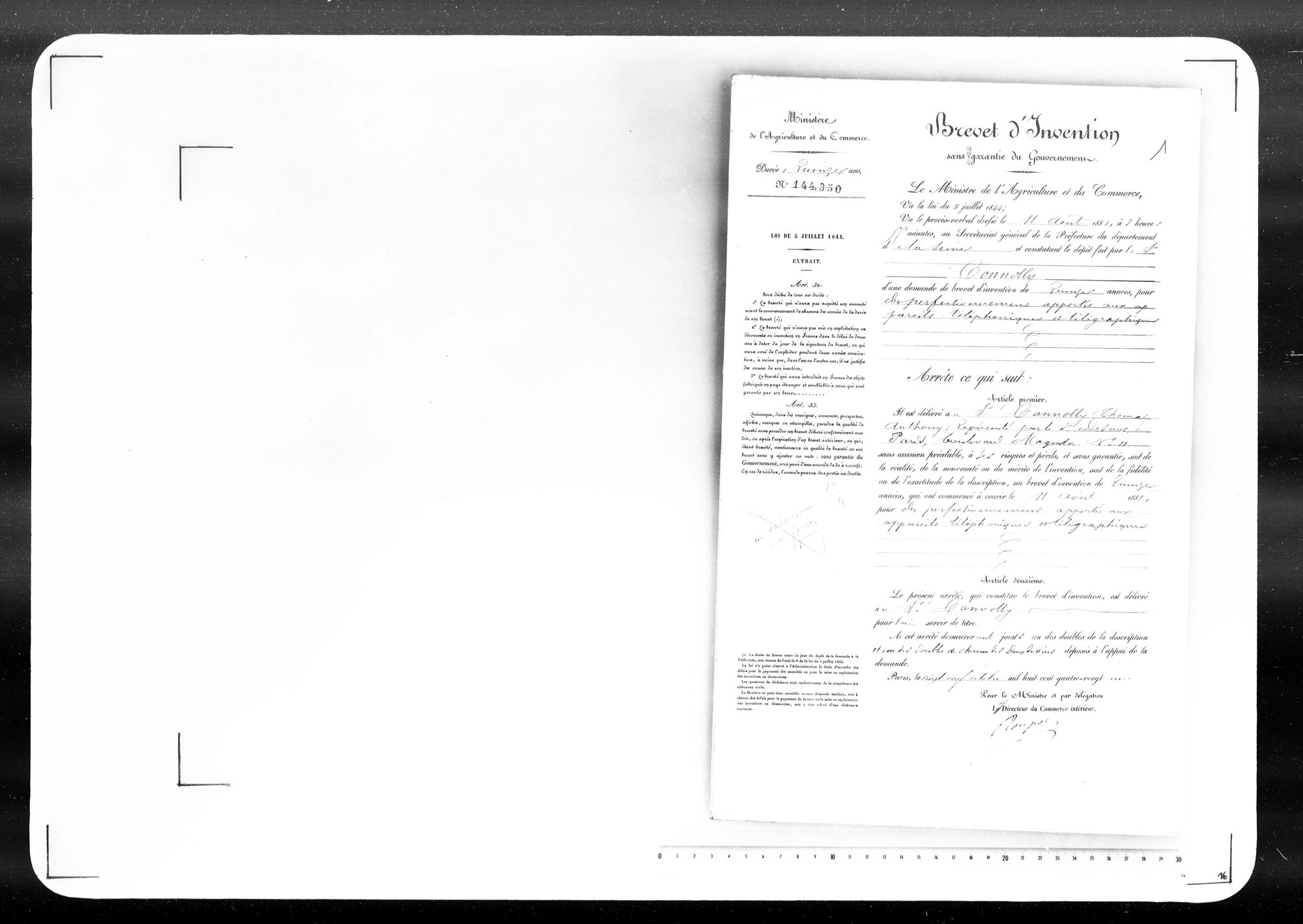 - Brevet d'invention de 15 ans