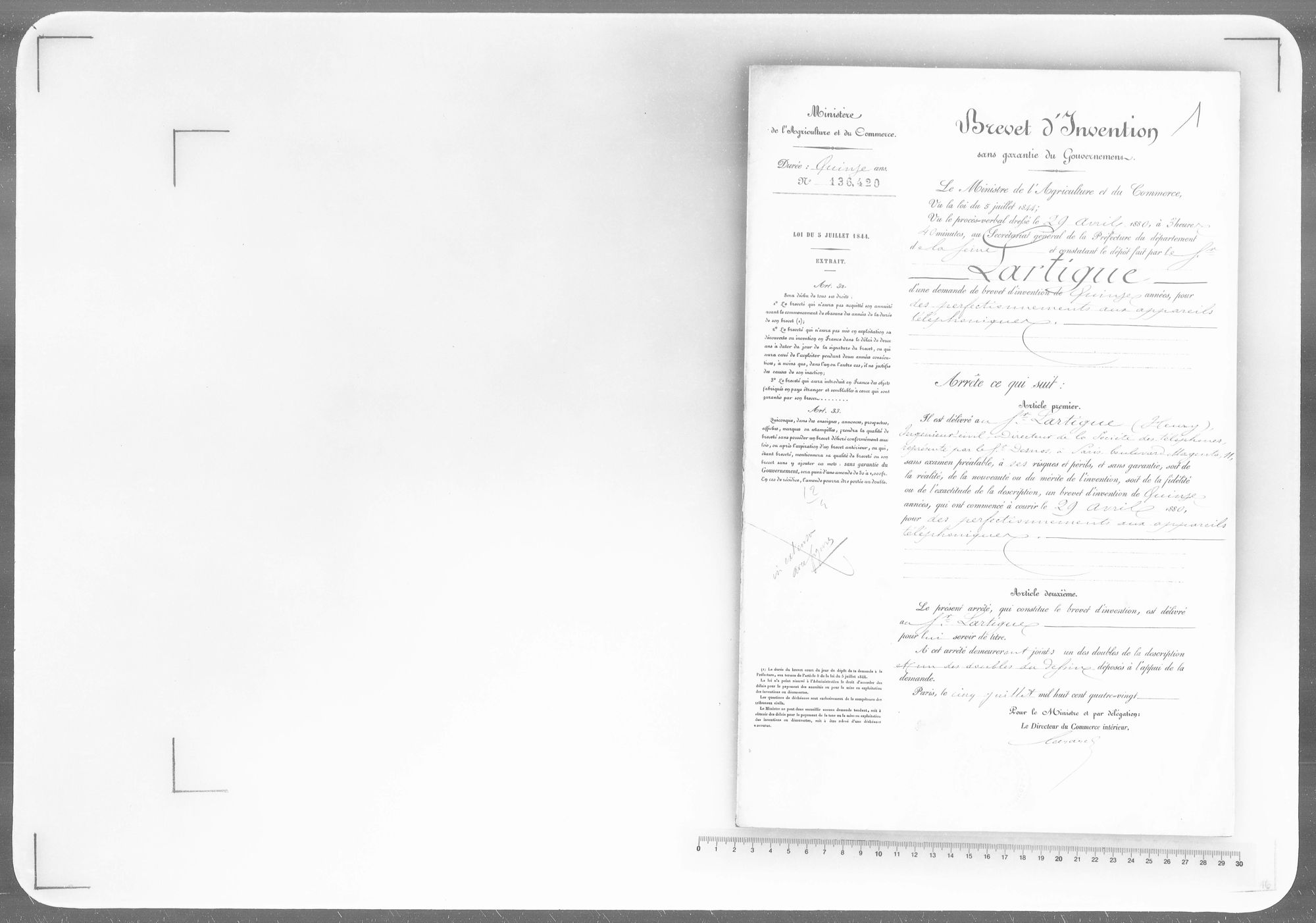 perfectionnements apportés aux appareils téléphoniques Cote du dossier 1BB136420_2 Numéro du brevet 136420 Type de brevet Certificat d'addition Date de dépot 25.02.1881 Applicant(s) / Profession(s) LARTIGUE Henri Voir les dossiers liés : brevet initial et addition(s) Acheter la reproduction Lien pérenne https://archives.inpi.fr:443/ark:55749/1ef040a685456d46aa7f0050568c1d46.moteur=arko_default_63f395e1547dd