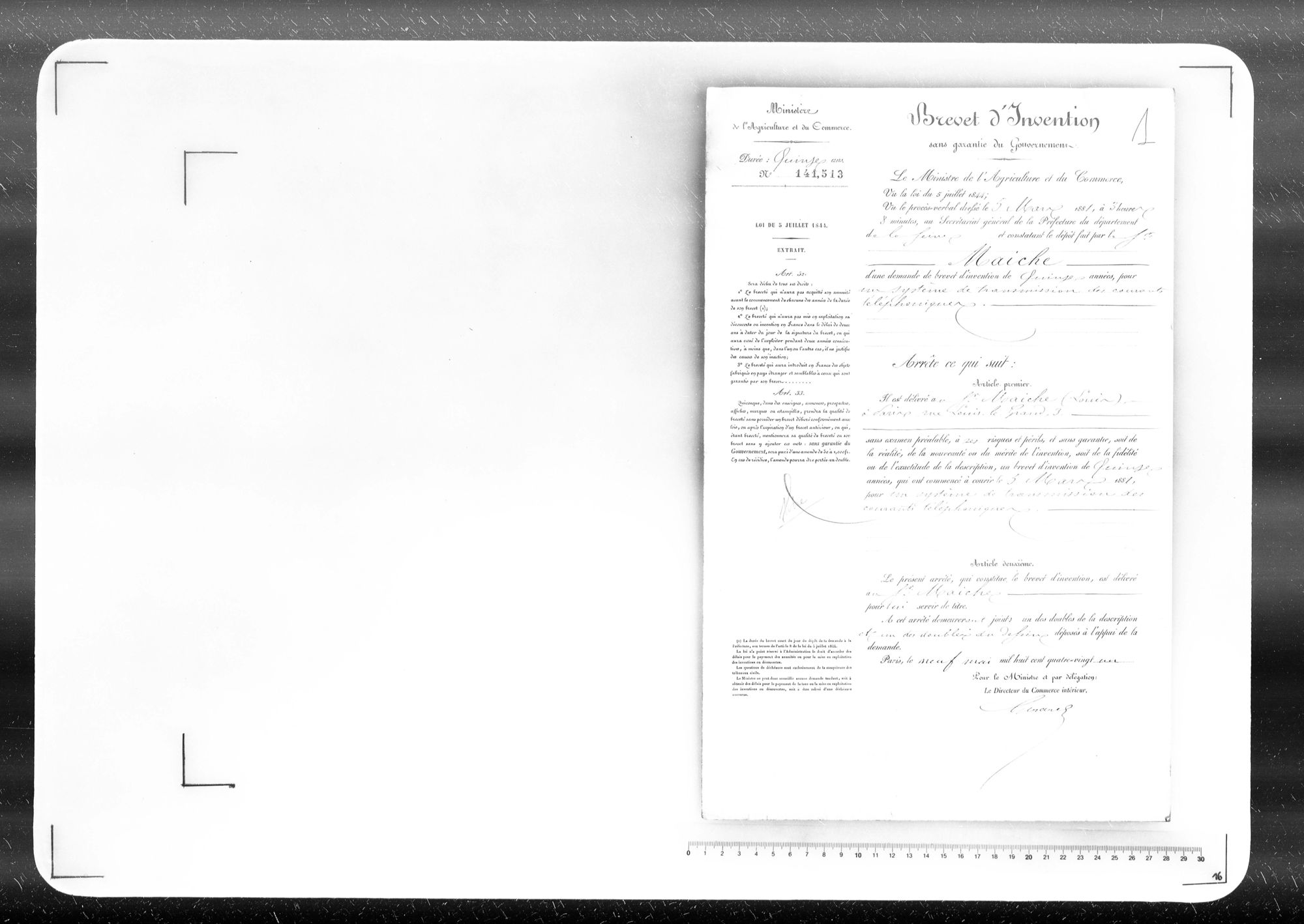 - Brevet d'invention de 15 ans