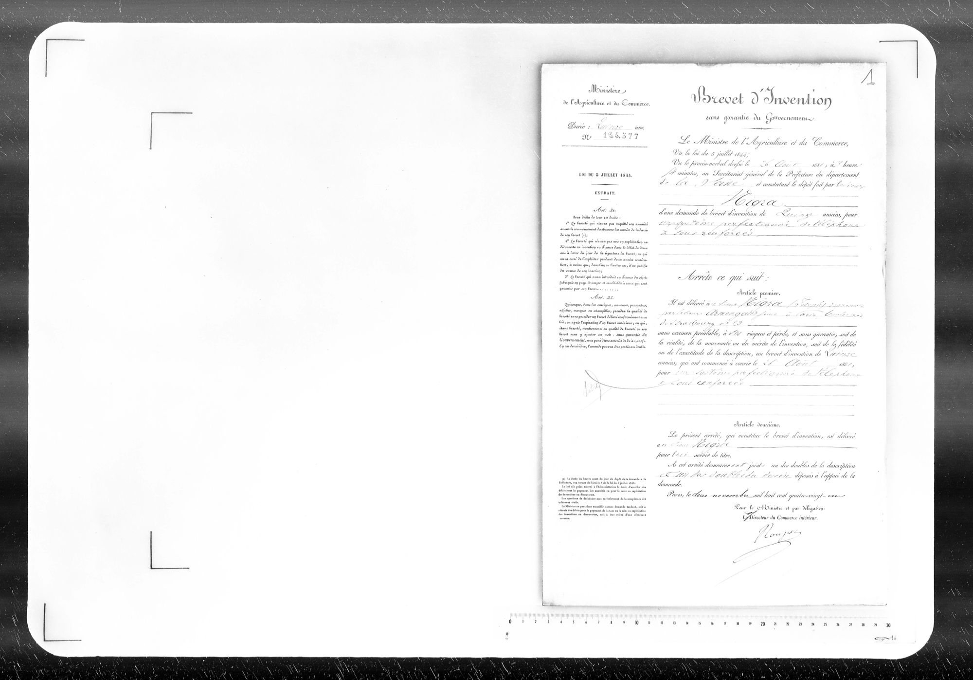 - Brevet d'invention de 15 ans