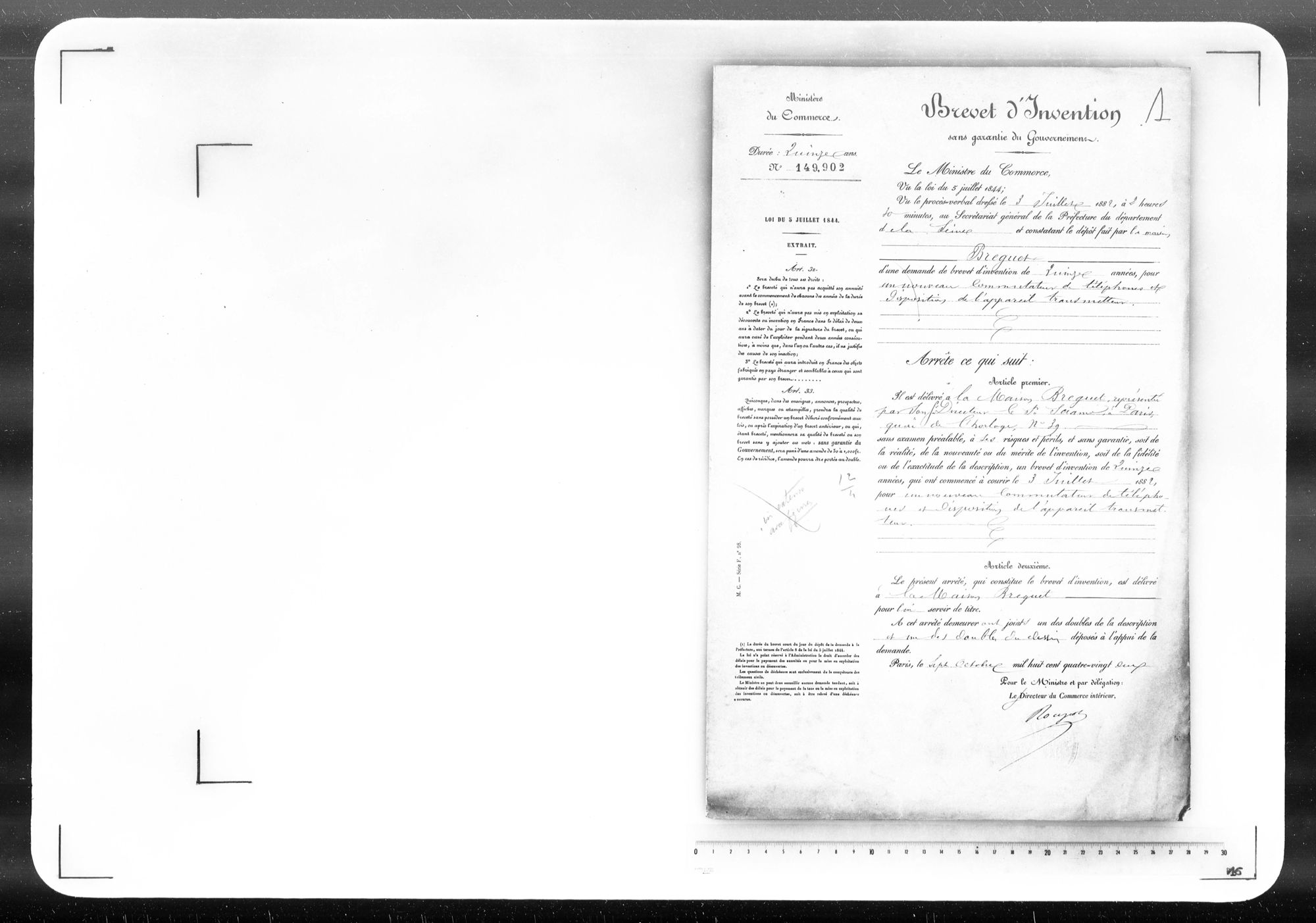 - Brevet d'invention de 15 ans