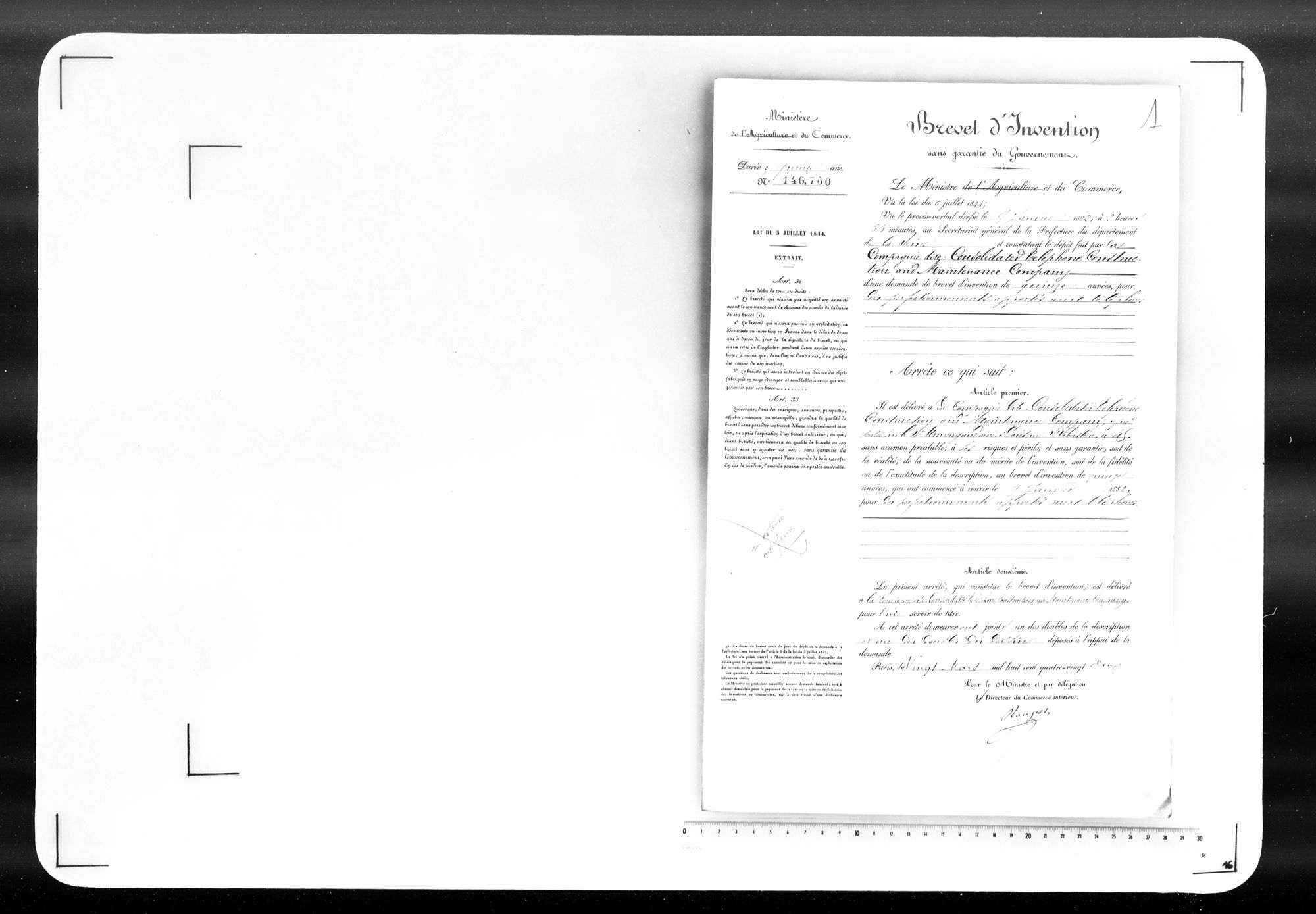- Brevet d'invention de 15 ans
