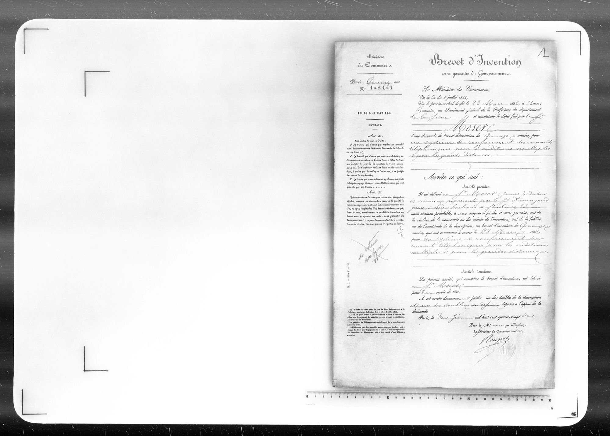 - Brevet d'invention de 15 ans