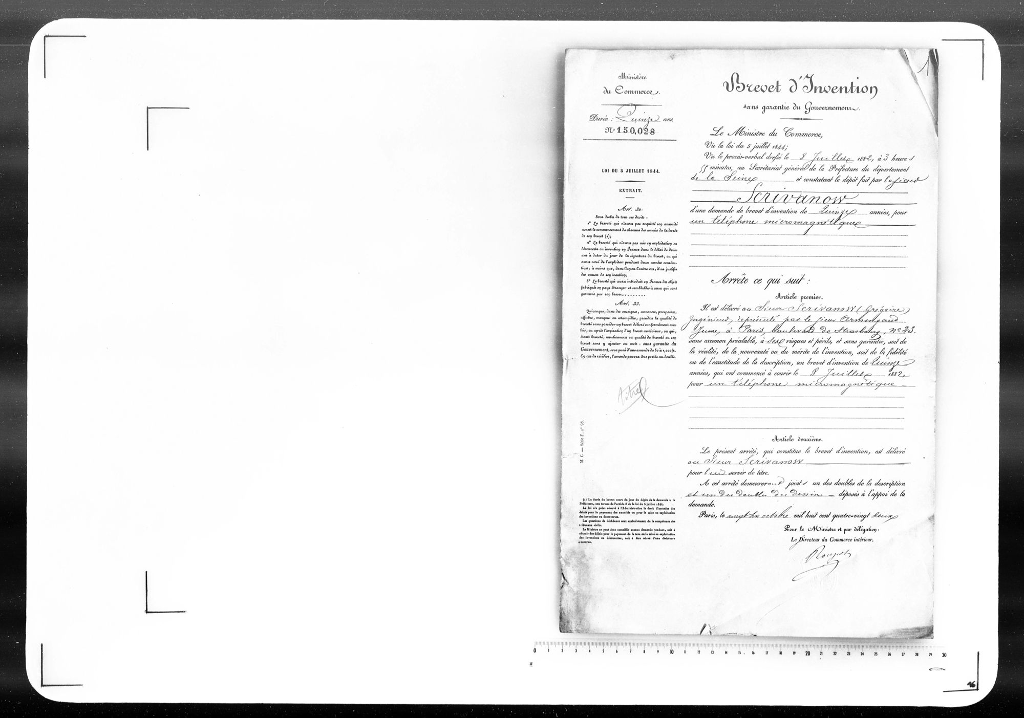- Brevet d'invention de 15 ans
