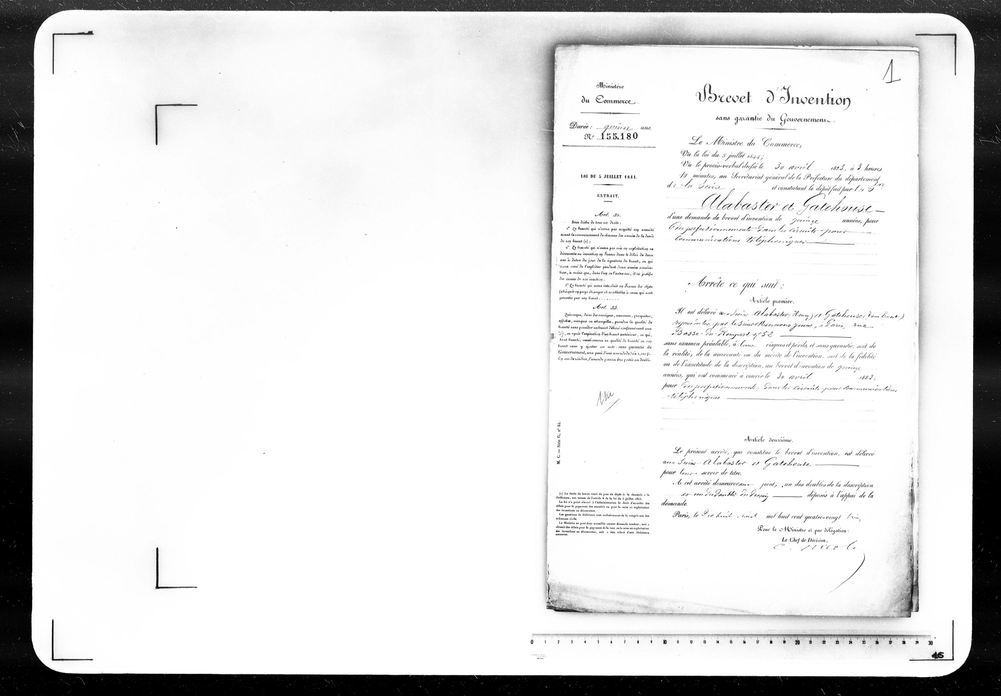 - Brevet d'invention de 15 ans