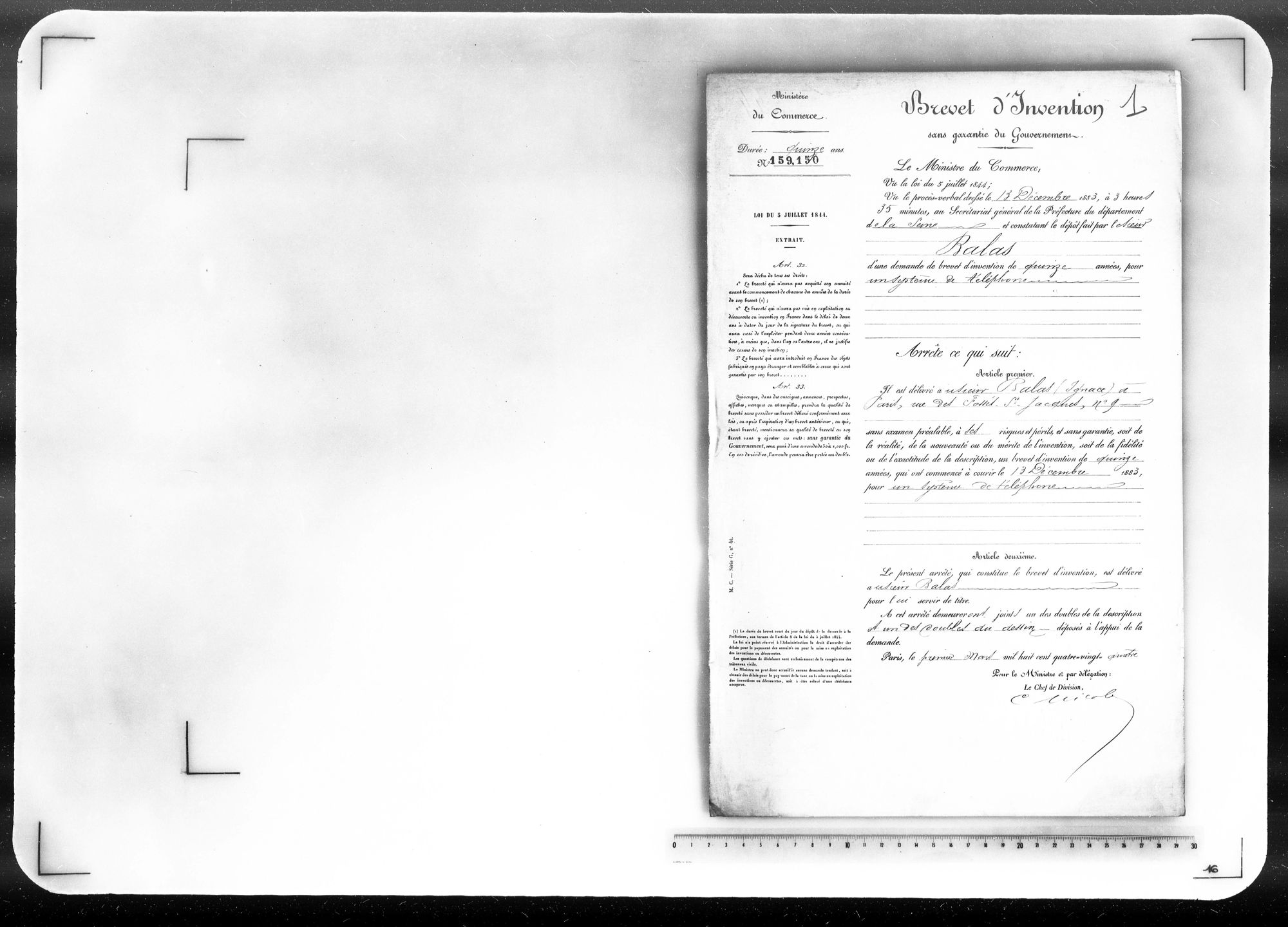 - Brevet d'invention de 15 ans