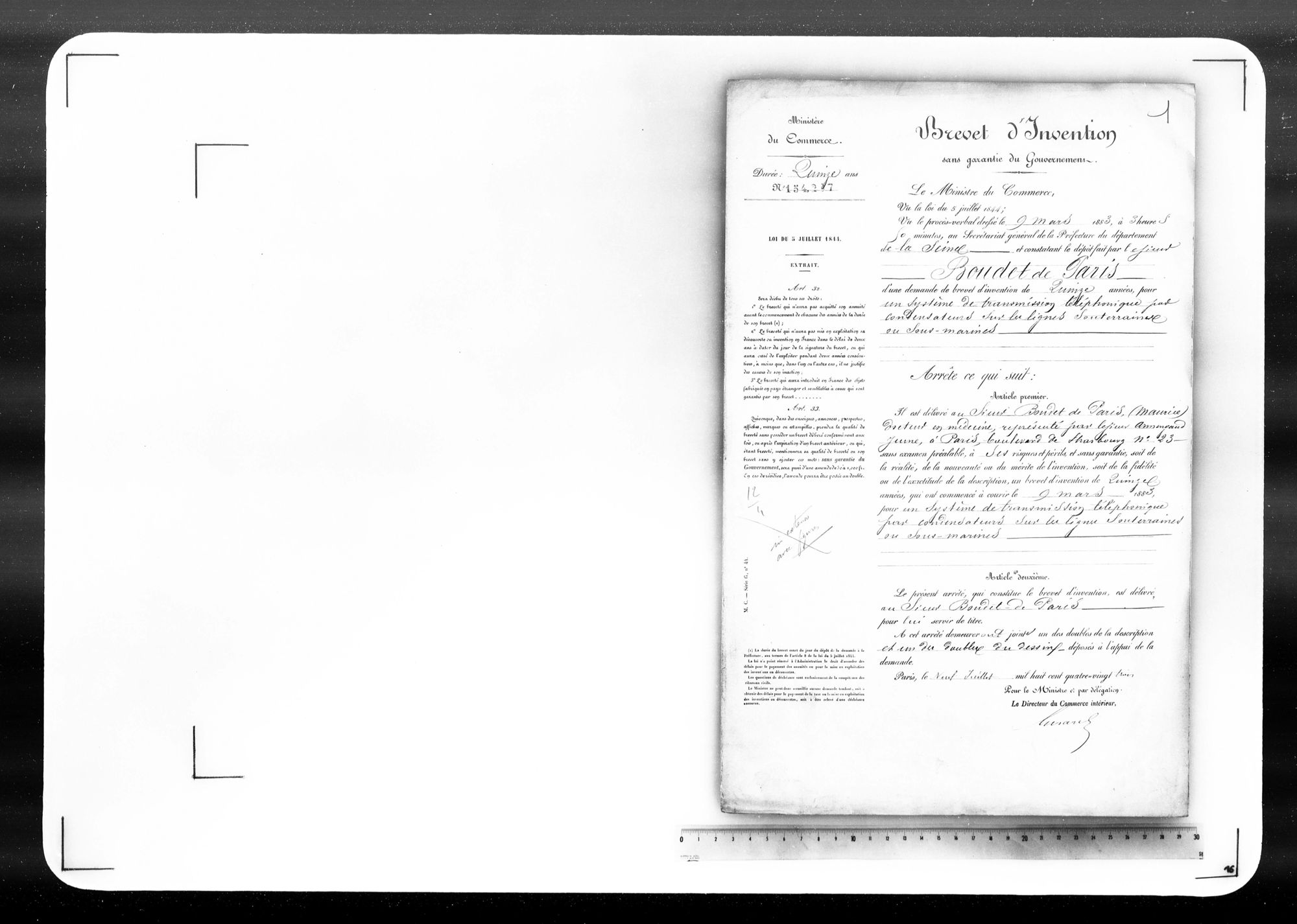 - Brevet d'invention de 15 ans