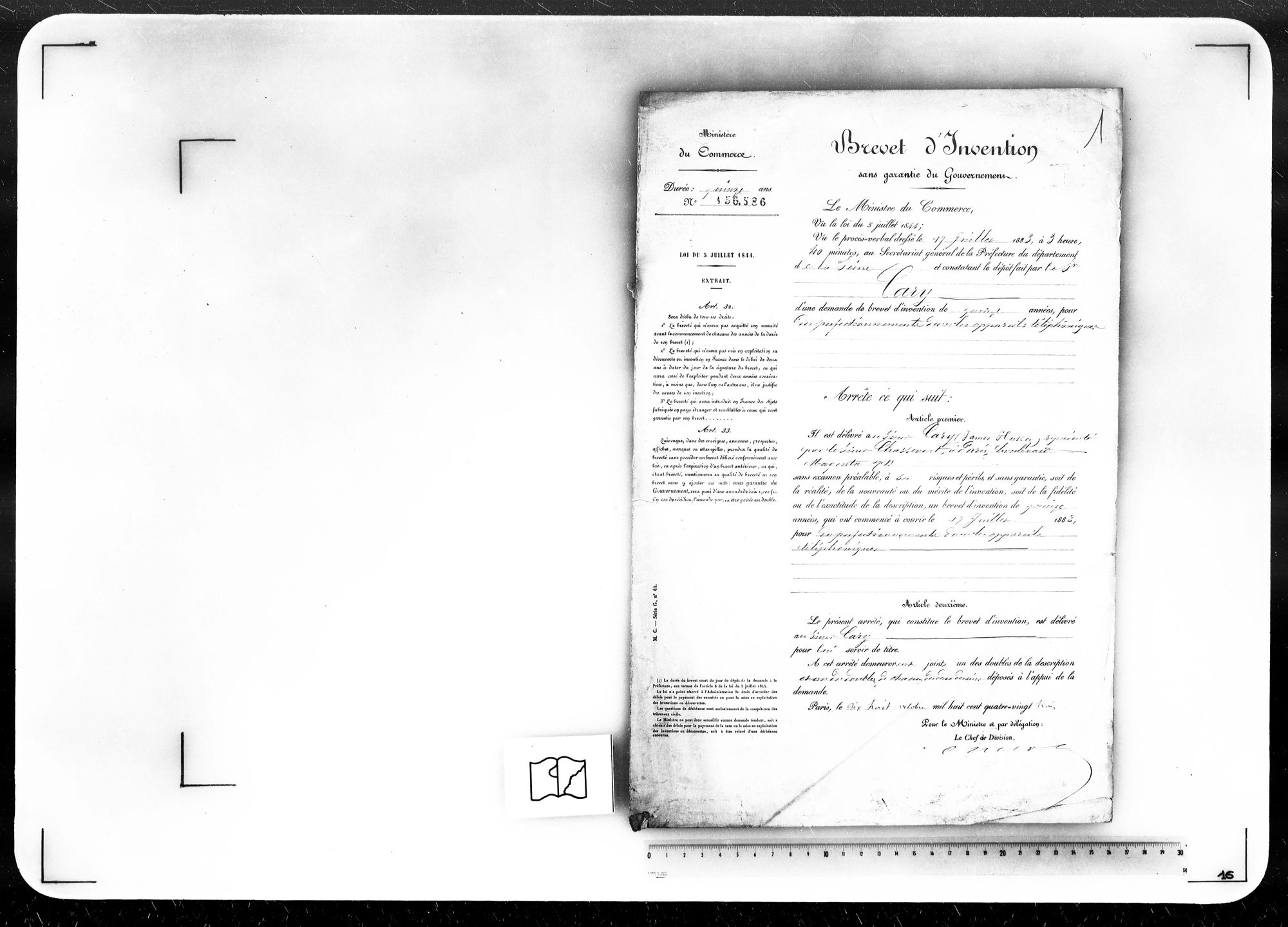 - Brevet d'invention de 15 ans