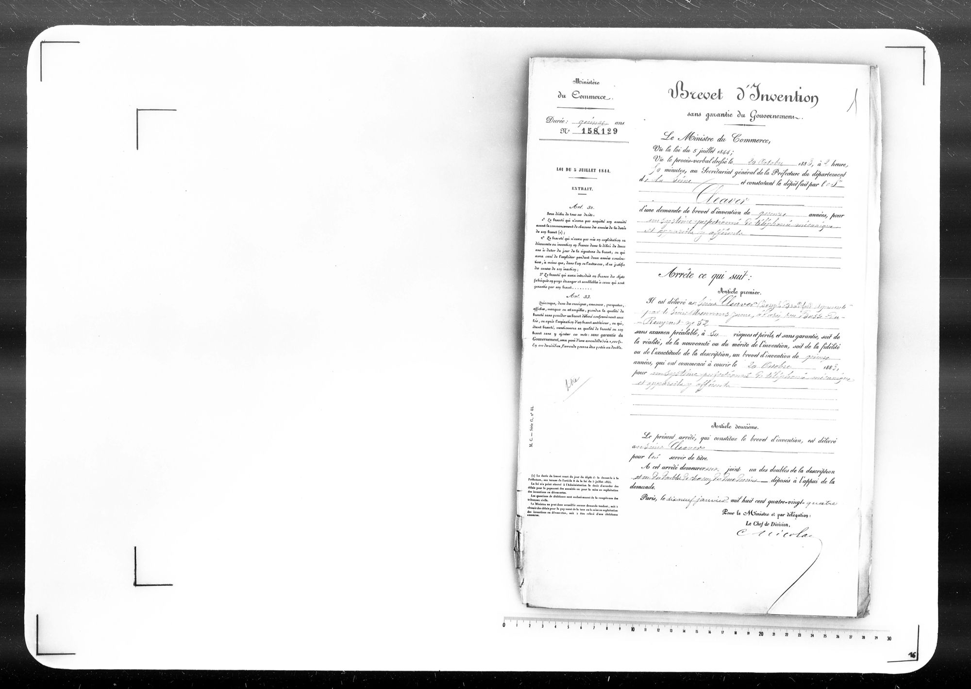 - Brevet d'invention de 15 ans