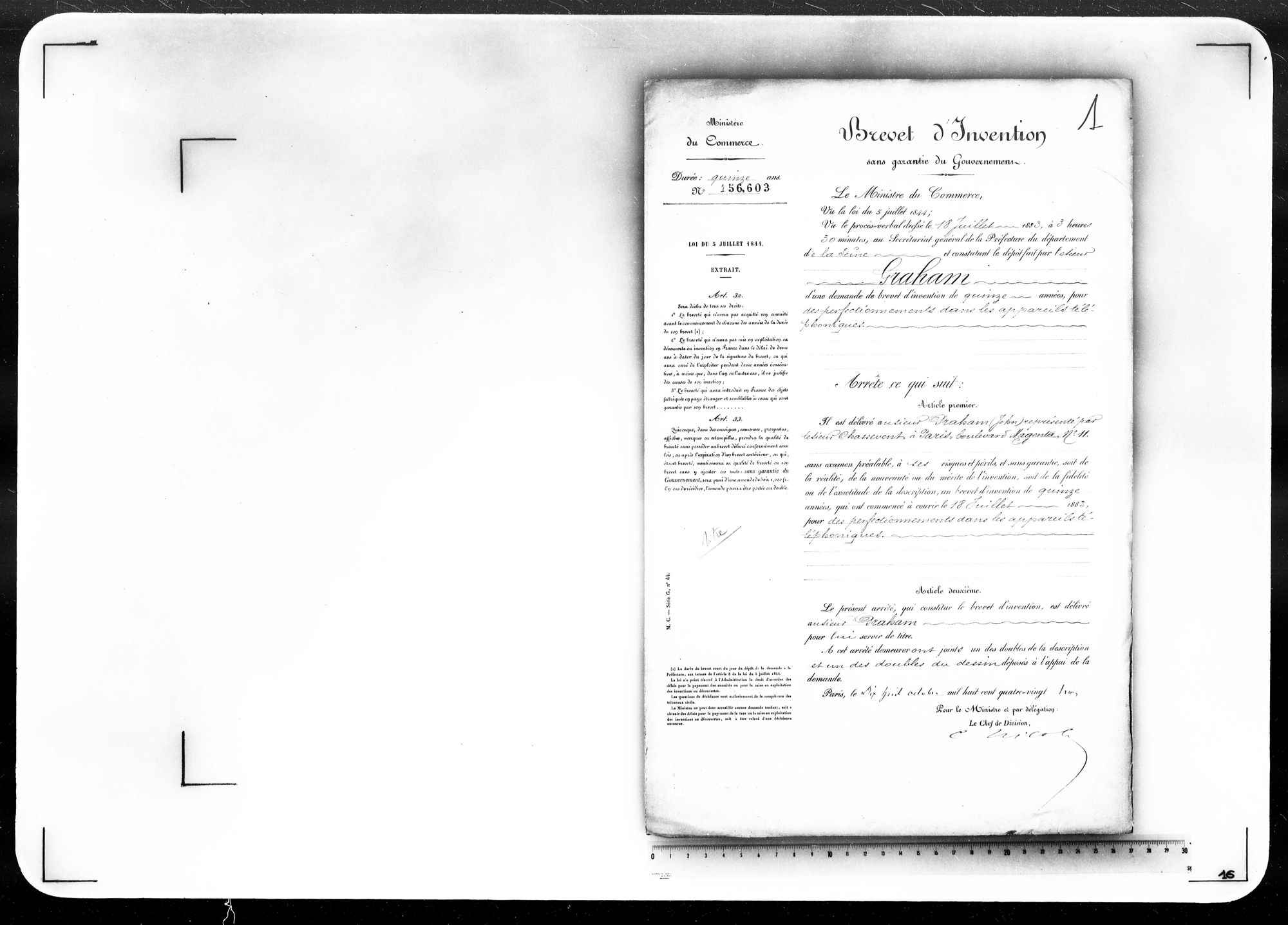 - Brevet d'invention de 15 ans