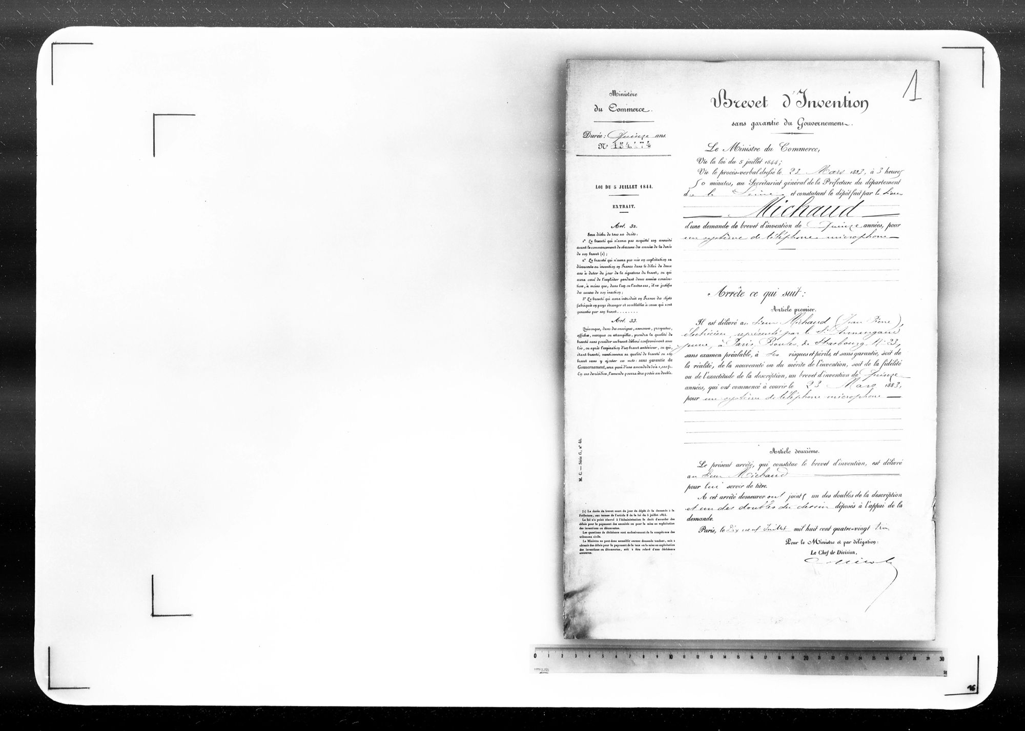 - Brevet d'invention de 15 ans
