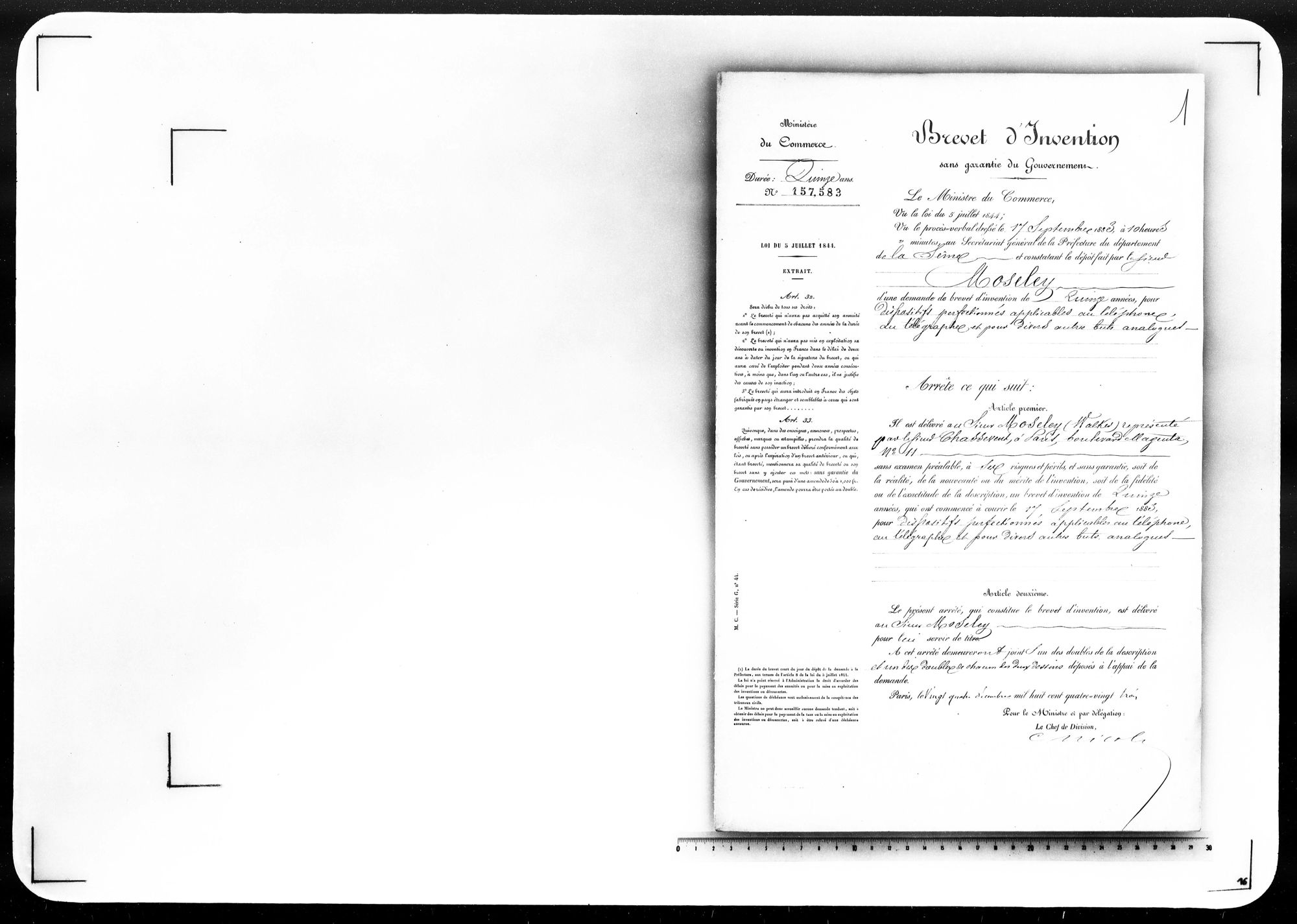 - Brevet d'invention de 15 ans