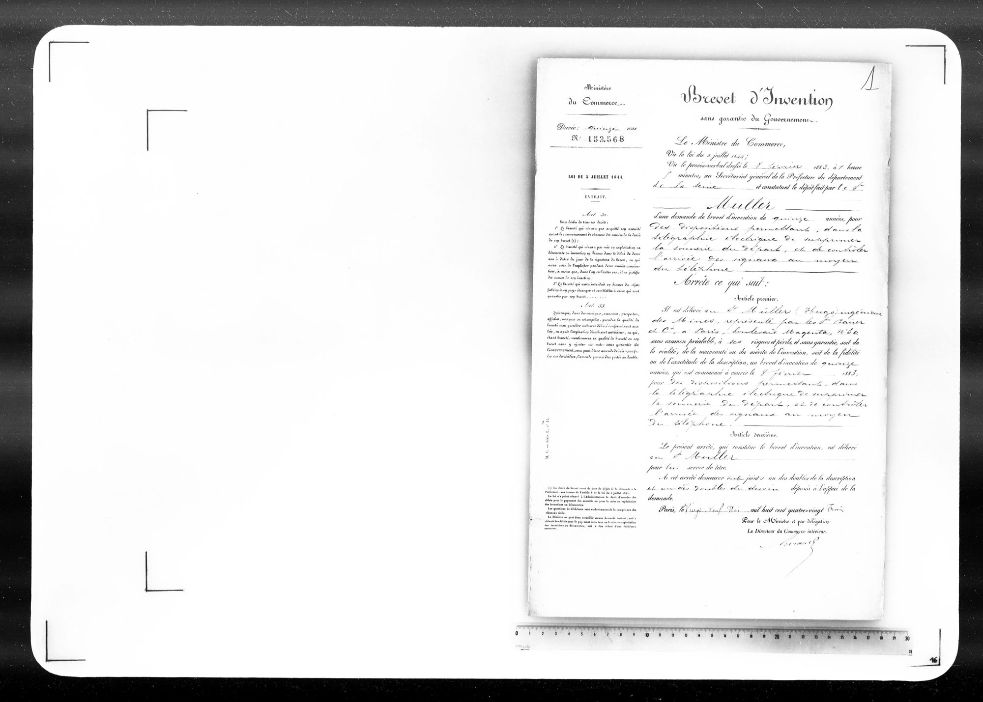 - Brevet d'invention de 15 ans