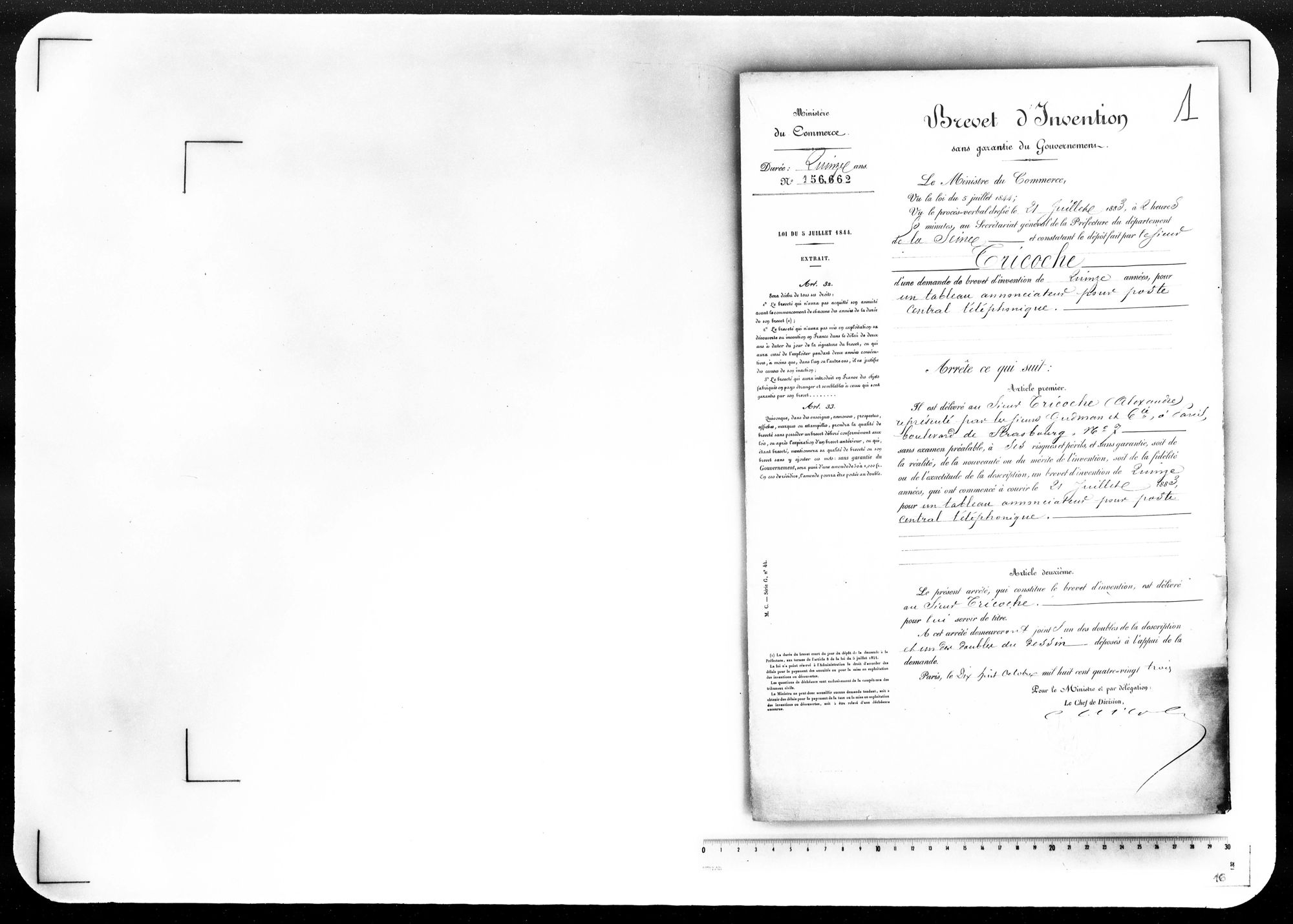 - Brevet d'invention de 15 ans