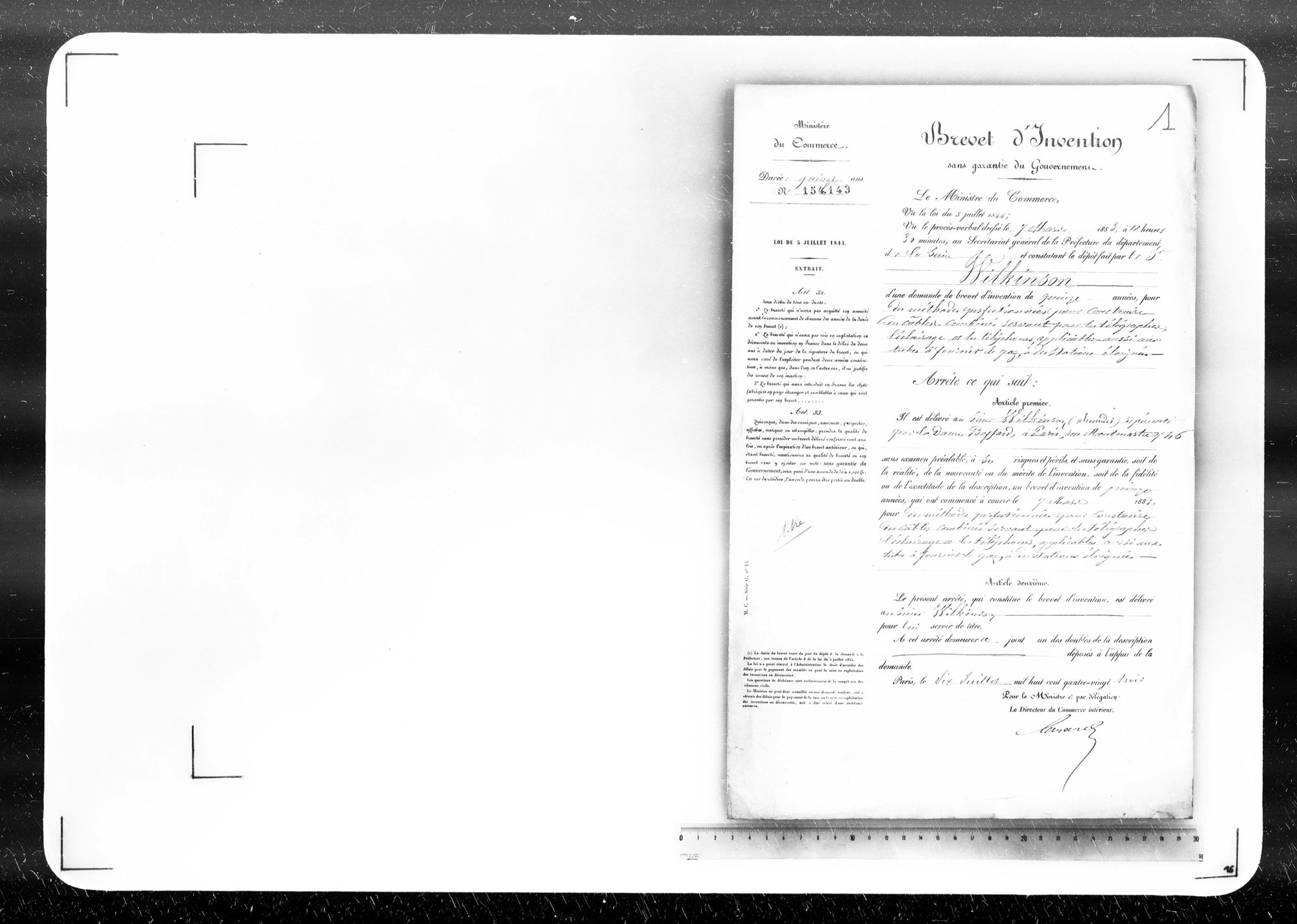 - Brevet d'invention de 15 ans