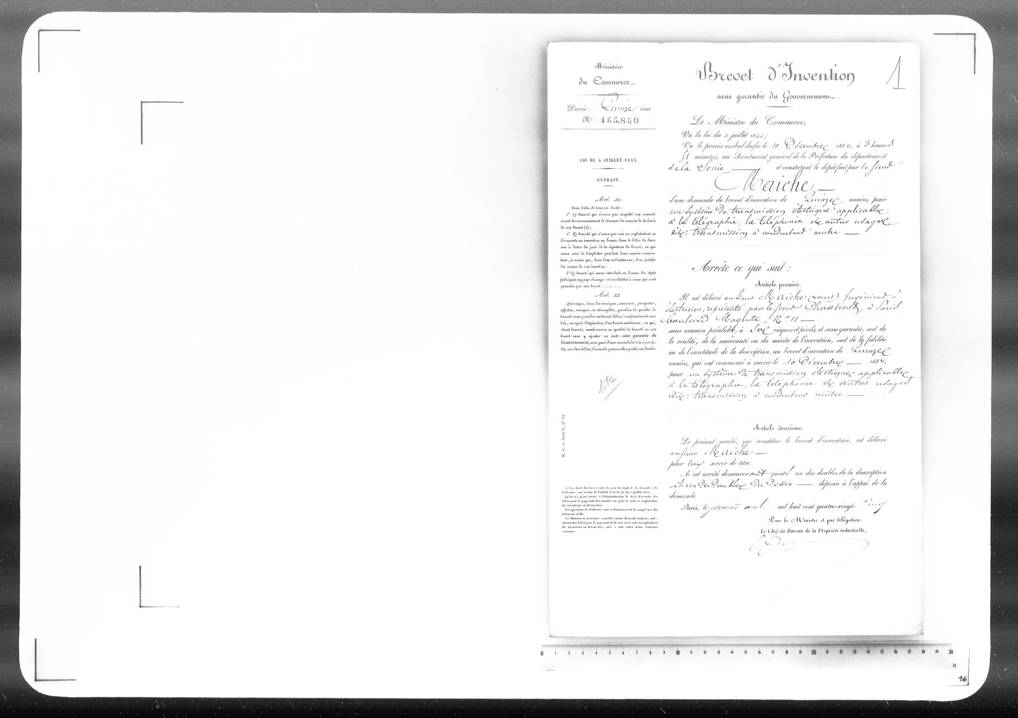 - Brevet d'invention de 15 ans