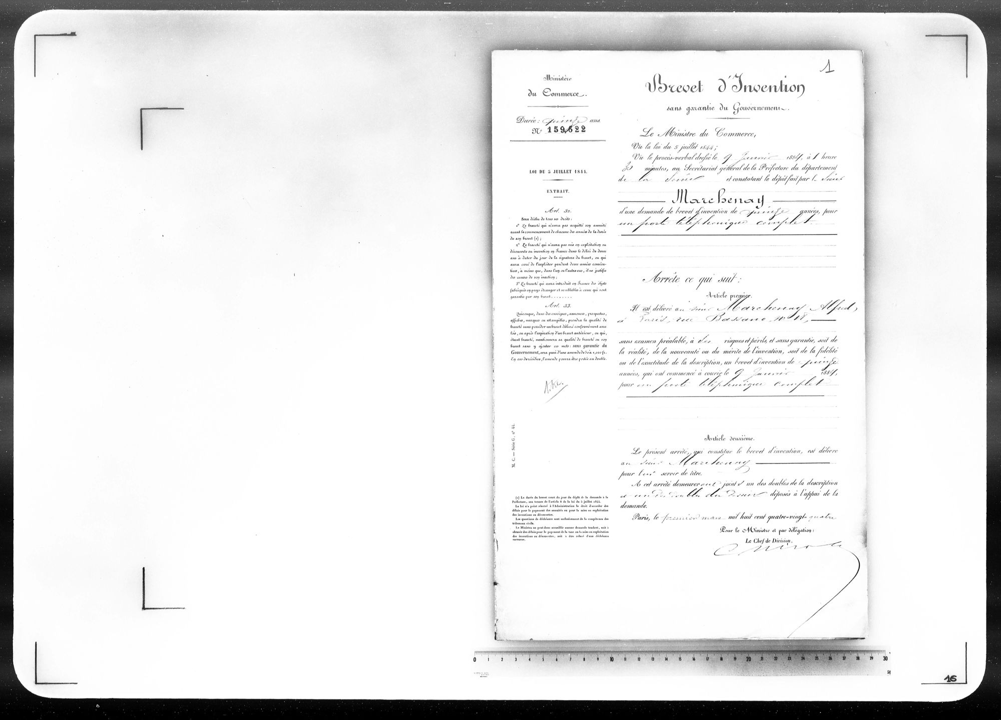 - Brevet d'invention de 15 ans