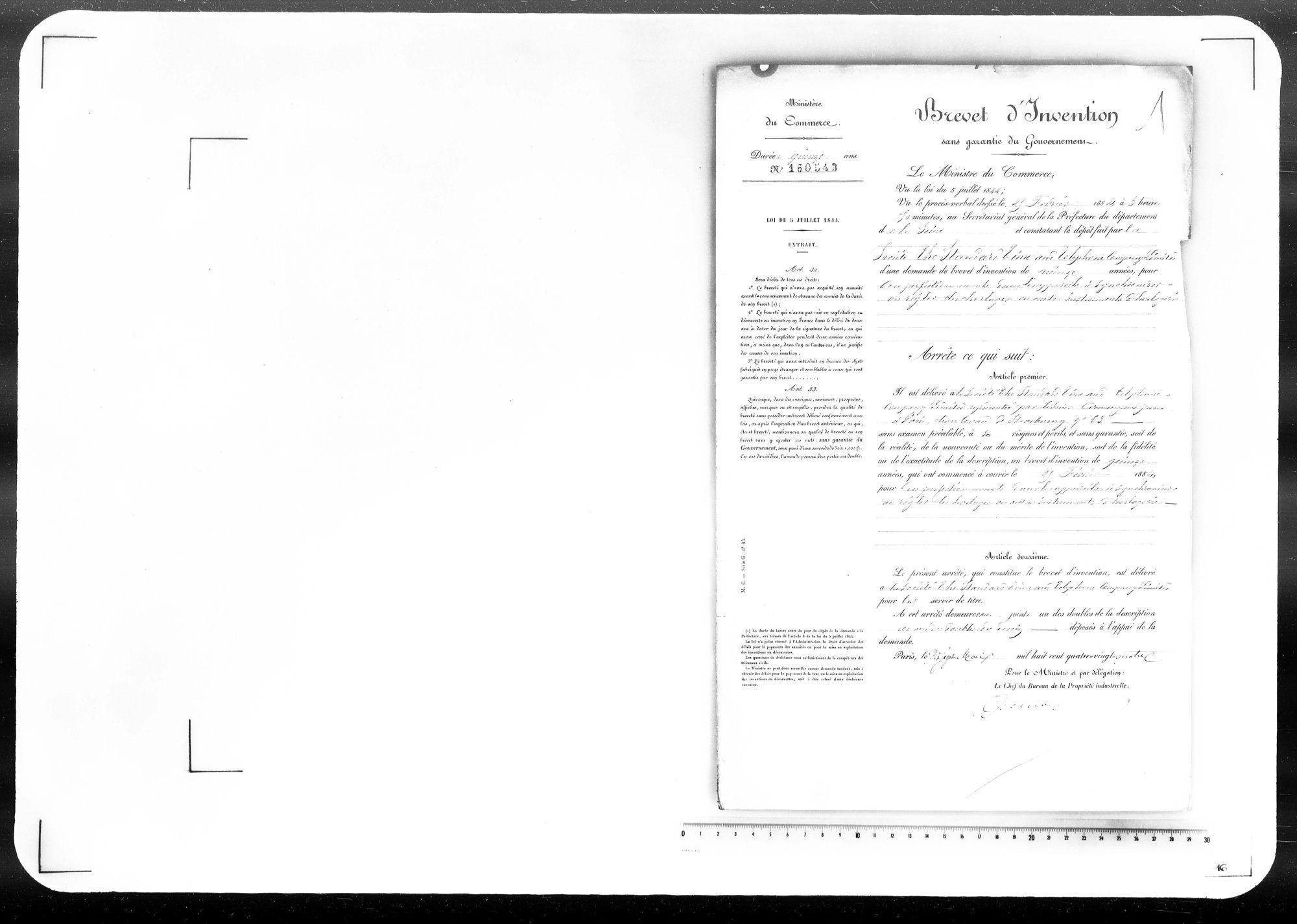 - Brevet d'invention de 15 ans