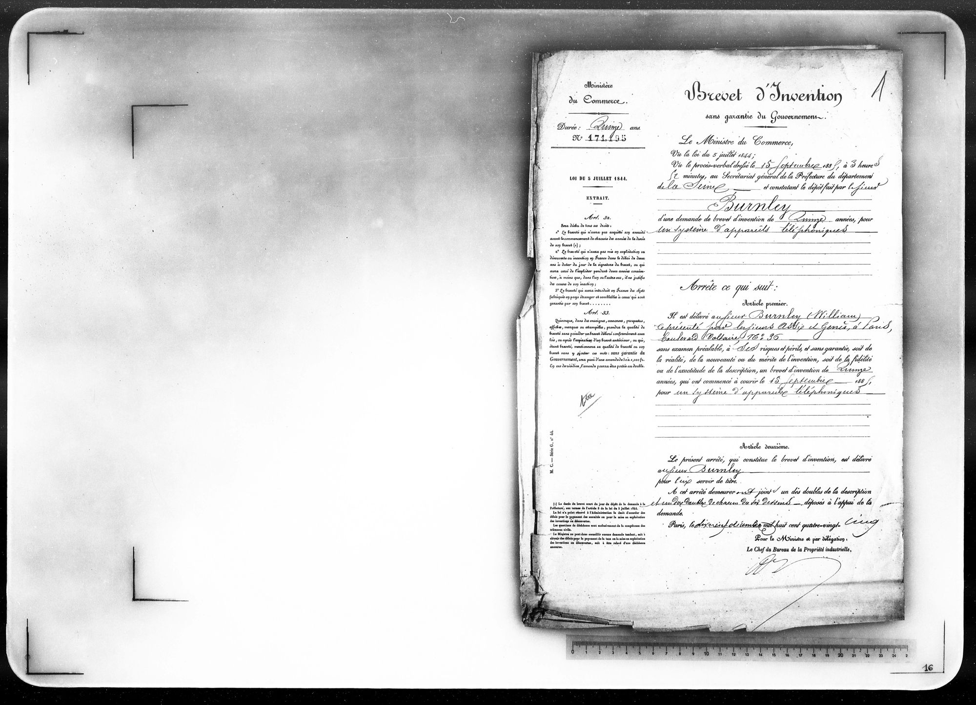 - Brevet d'invention de 15 ans