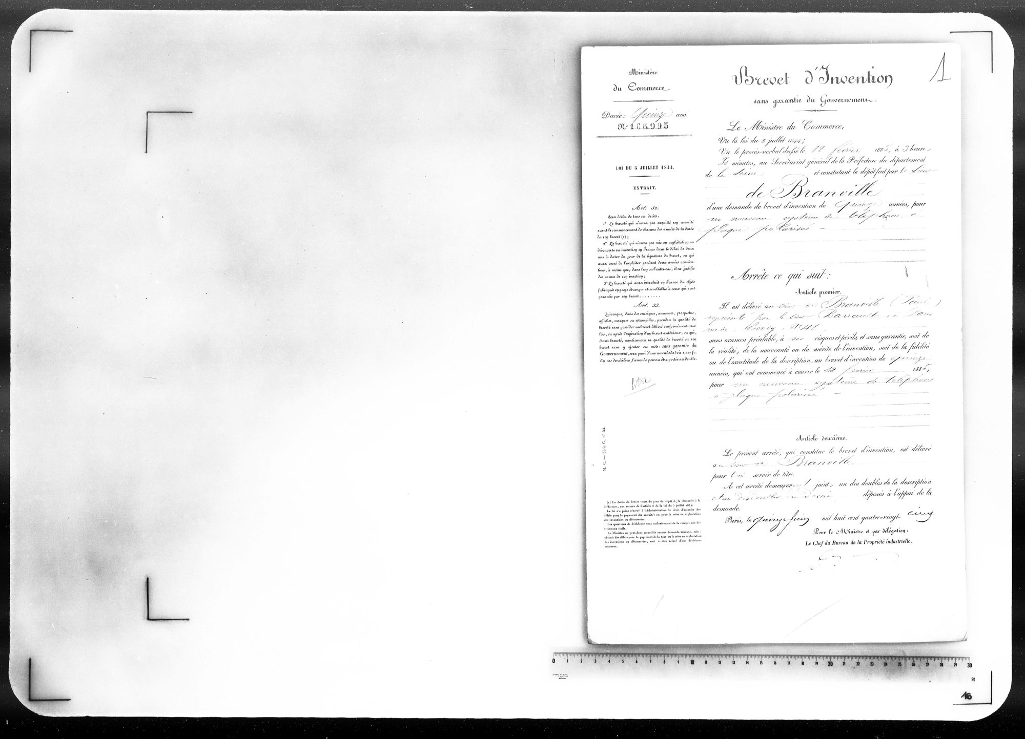 - Brevet d'invention de 15 ans