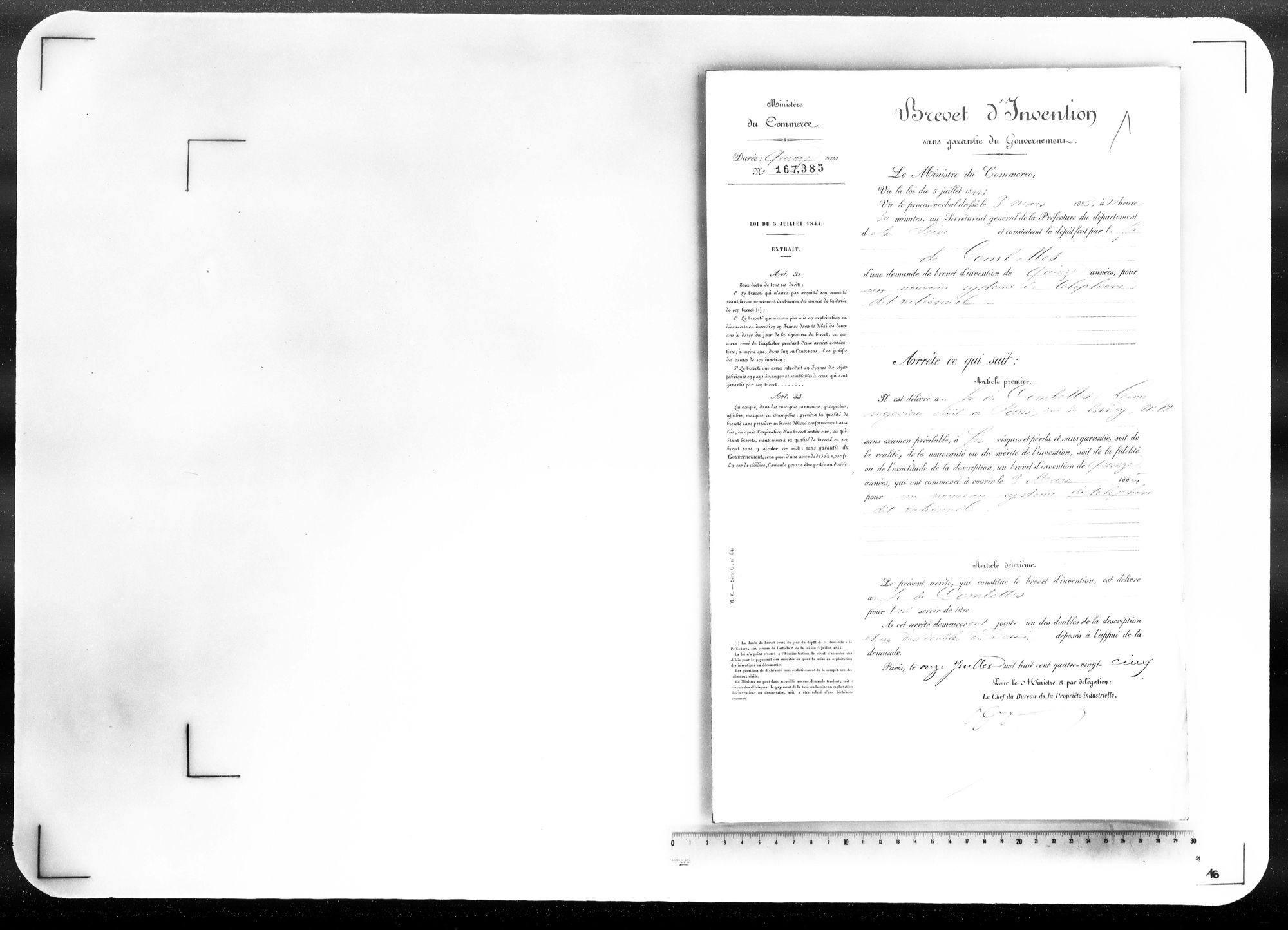 - Brevet d'invention de 15 ans