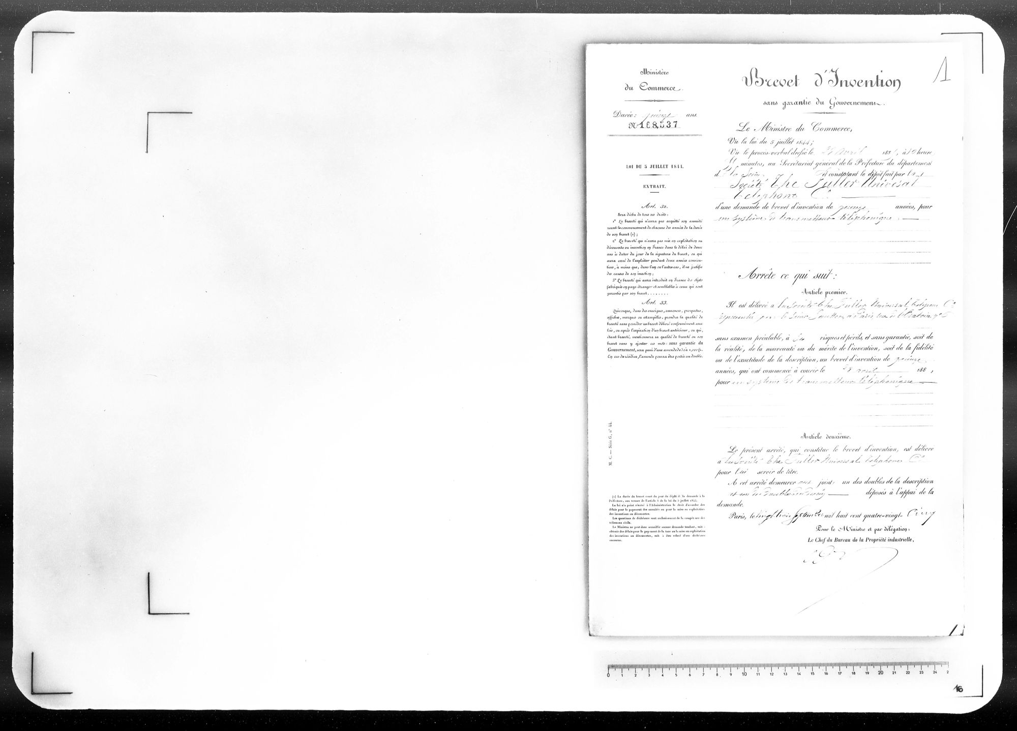 - Brevet d'invention de 15 ans