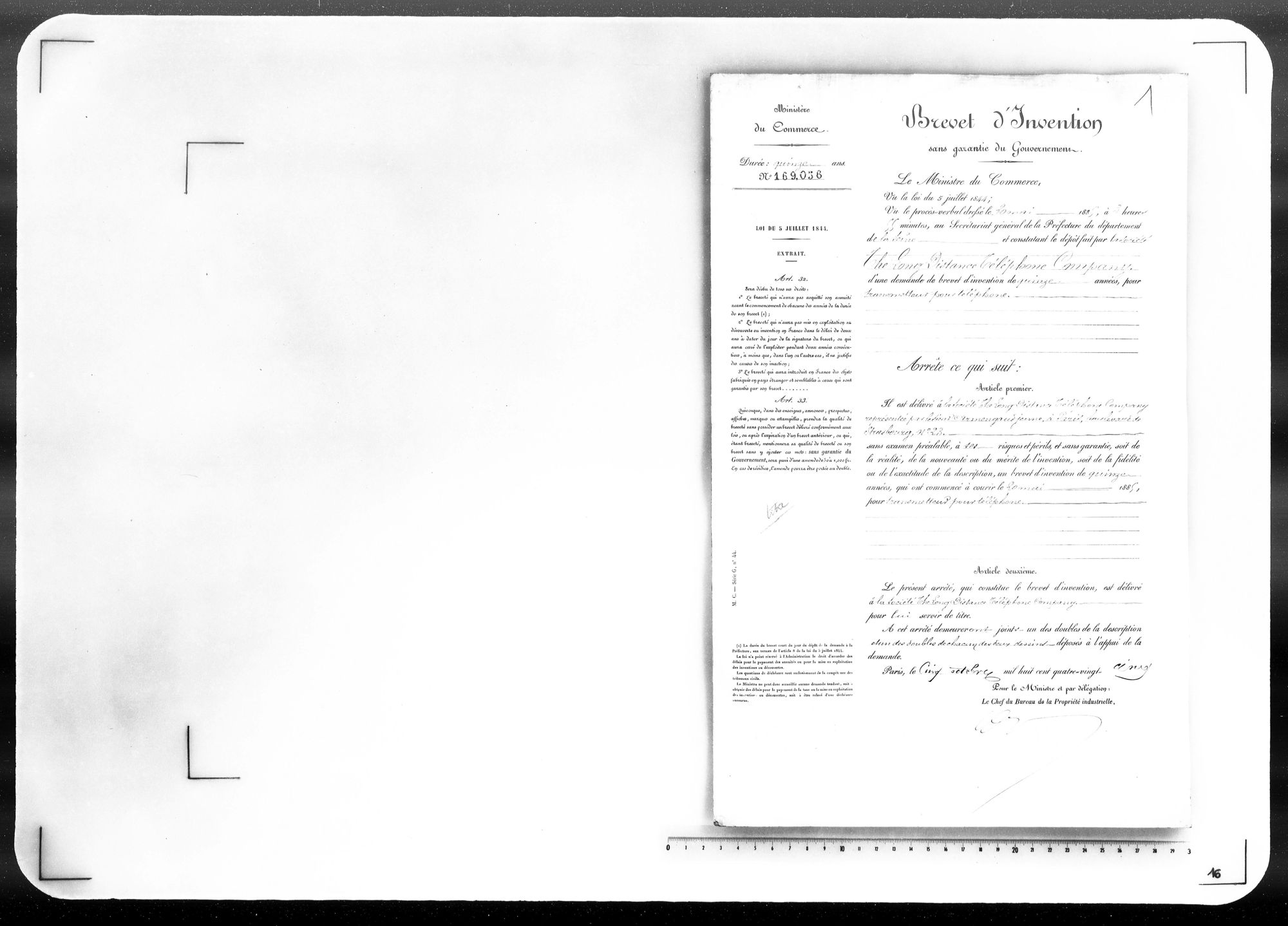 - Brevet d'invention de 15 ans