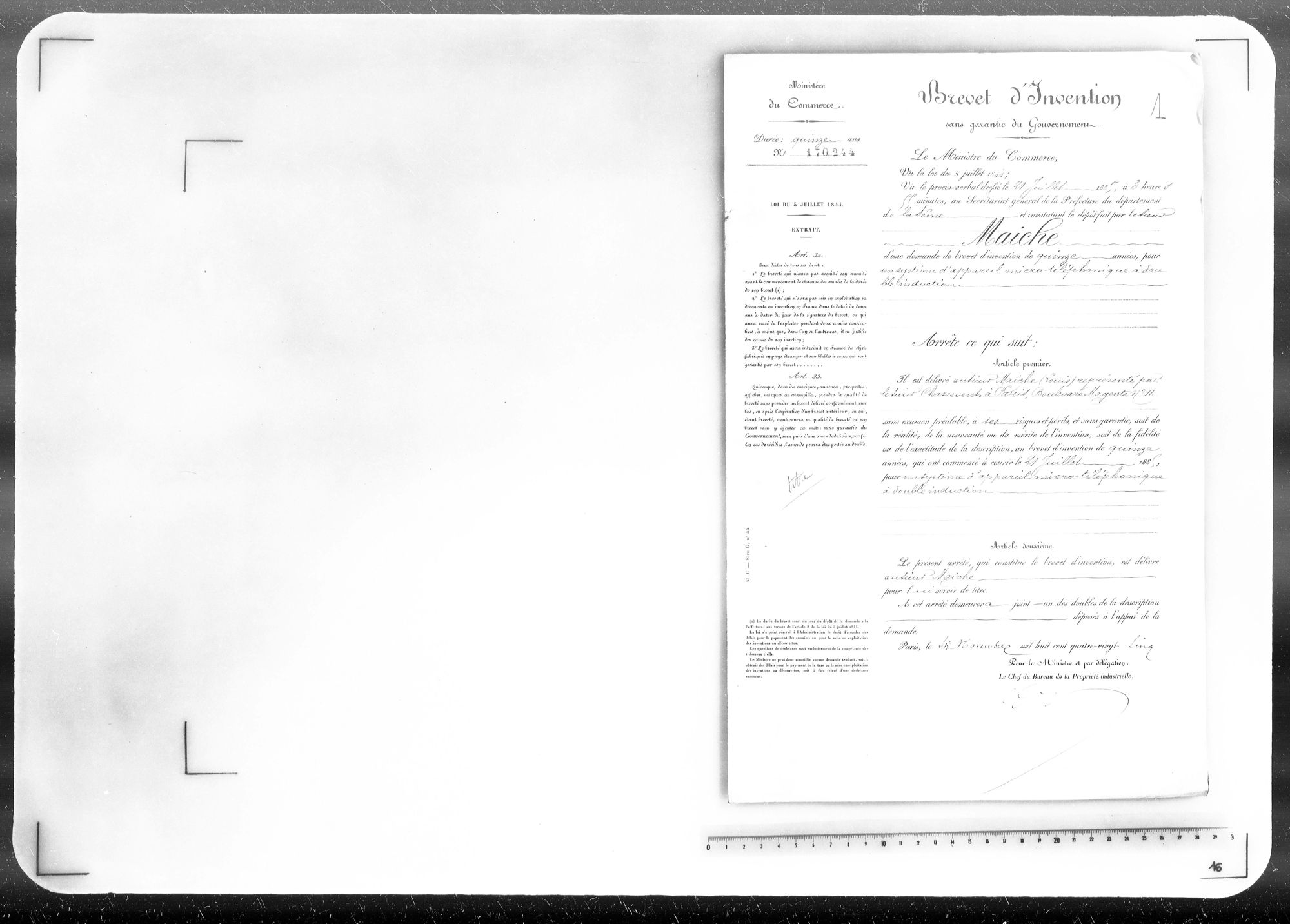 - Brevet d'invention de 15 ans