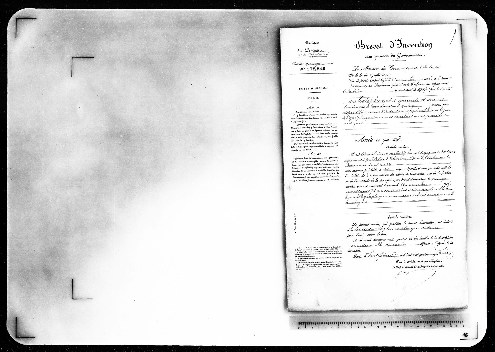 - Brevet d'invention de 15 ans