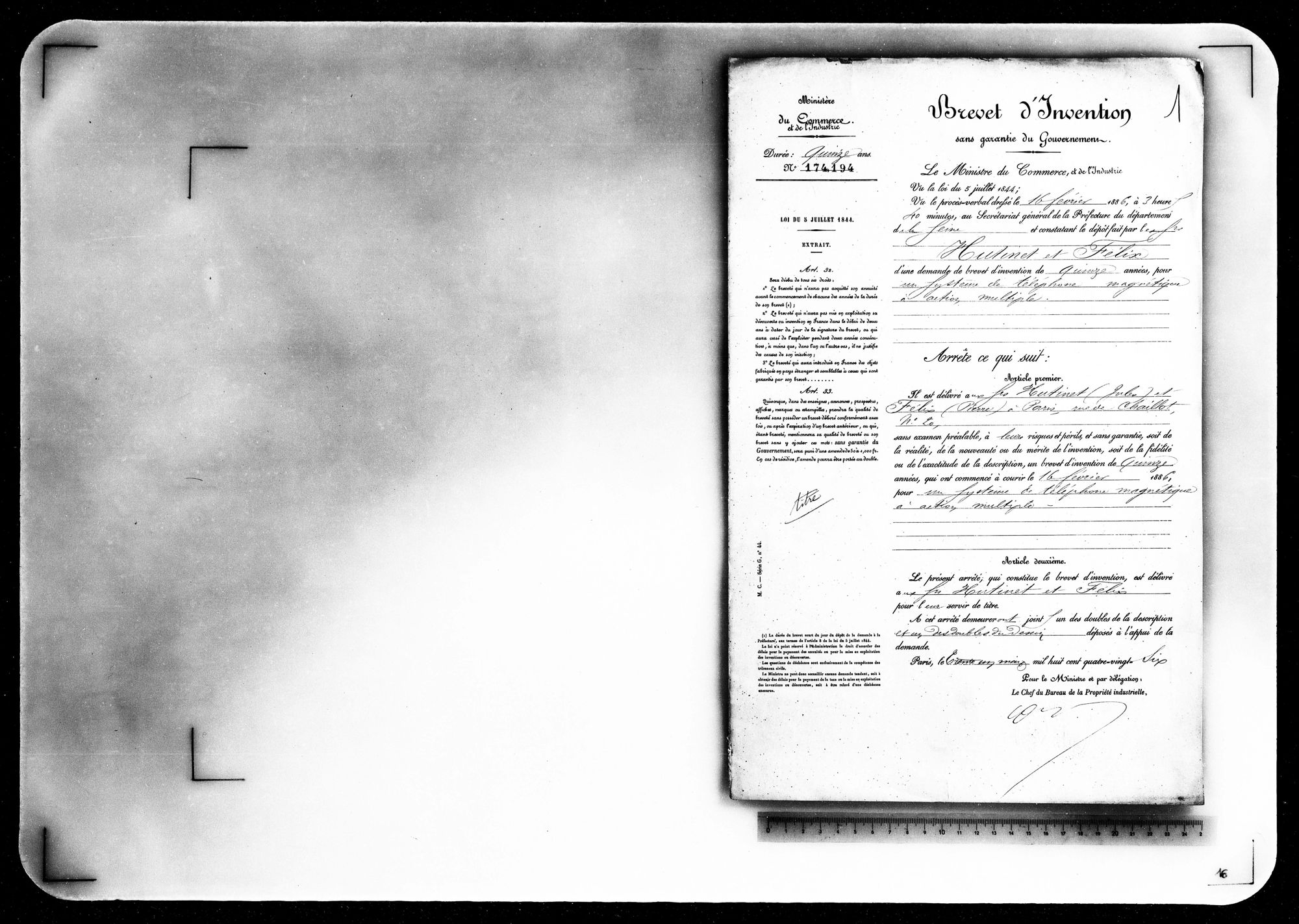 - Brevet d'invention de 15 ans