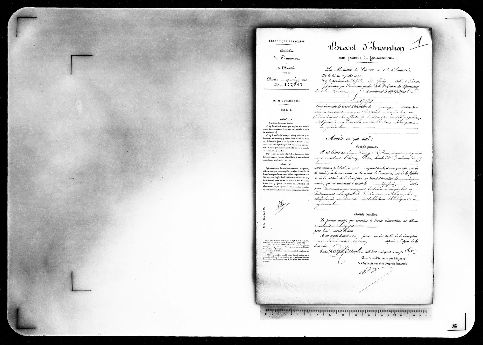 - Brevet d'invention de 15 ans
