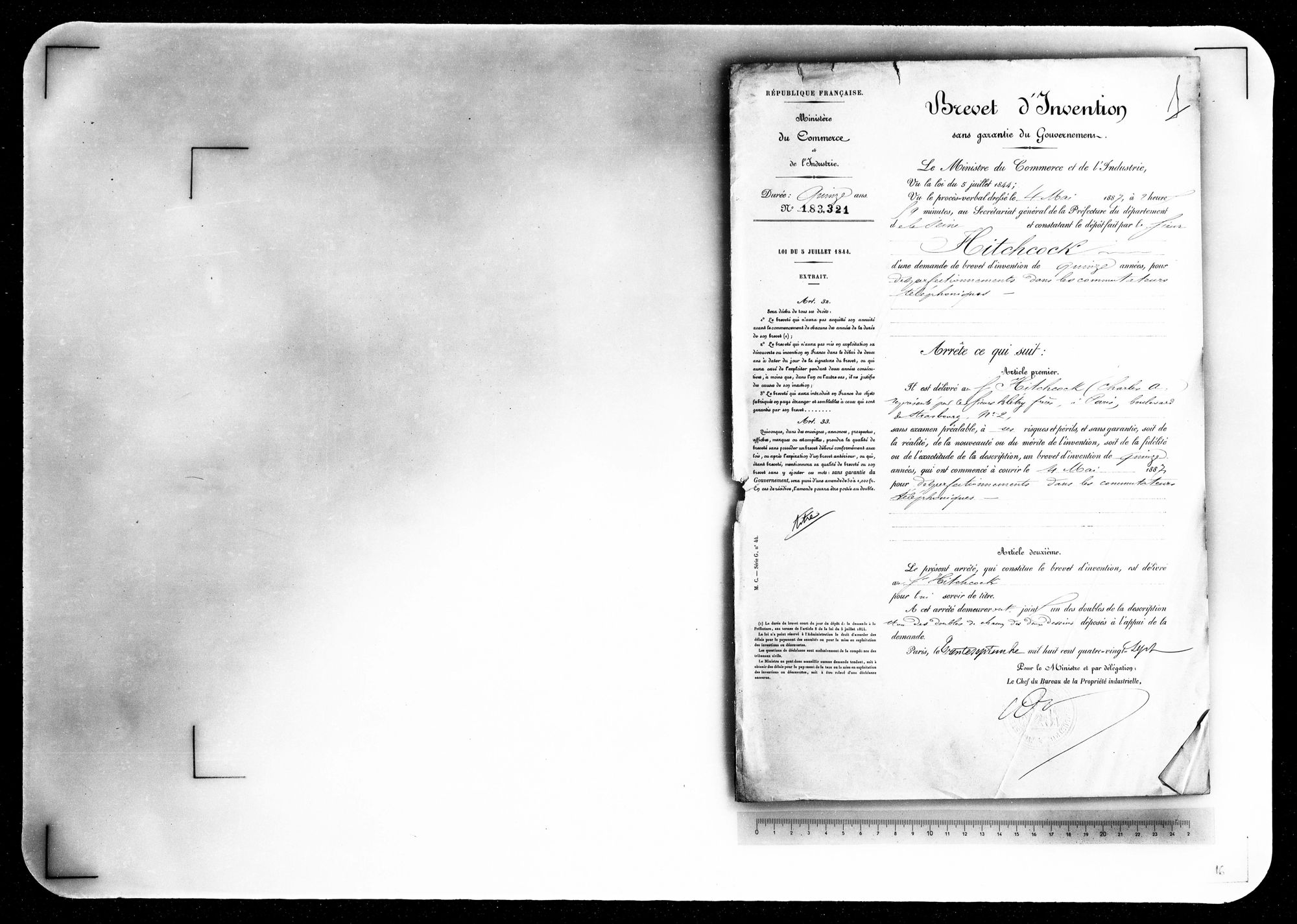 - Brevet d'invention de 15 ans