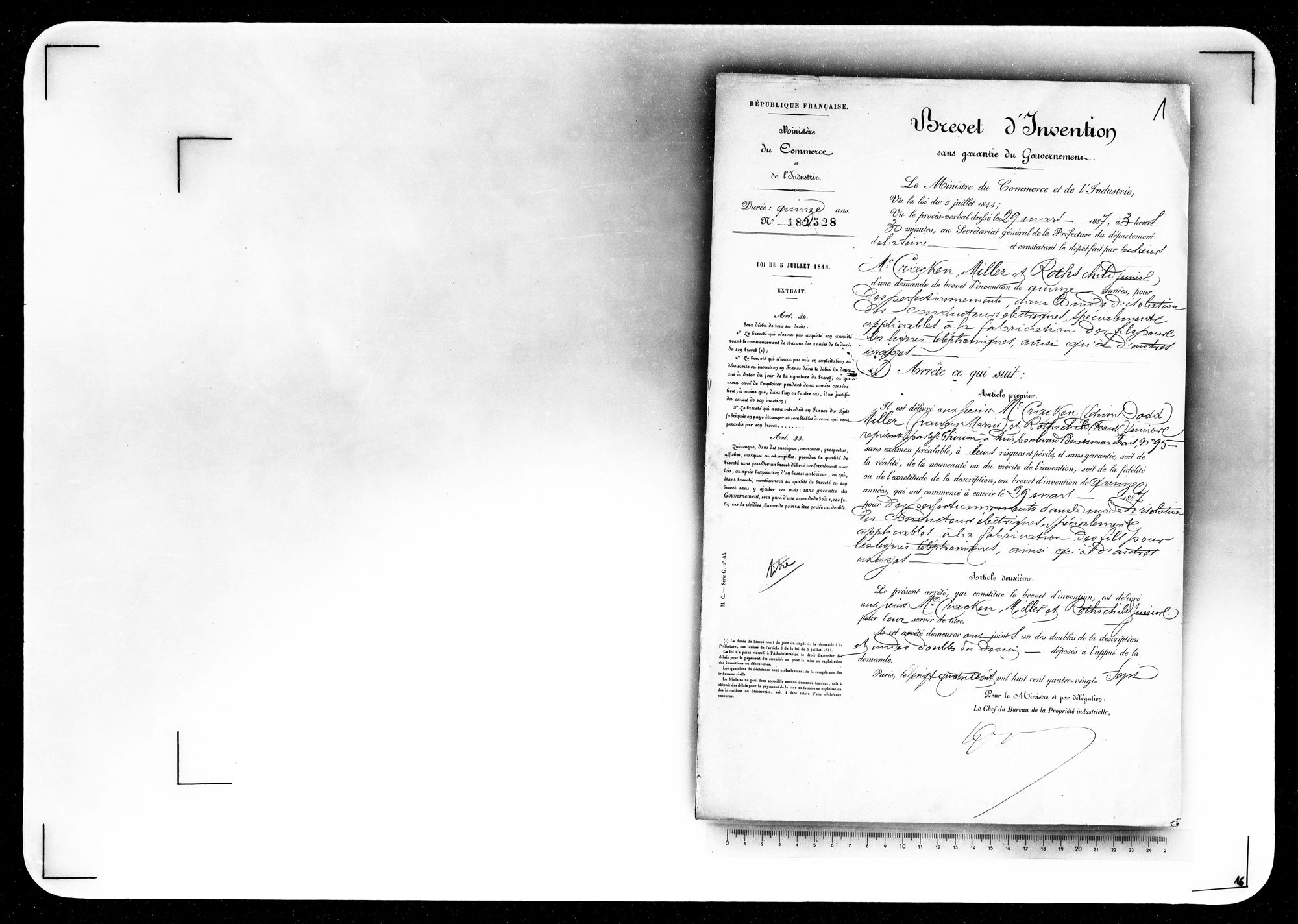 - Brevet d'invention de 15 ans