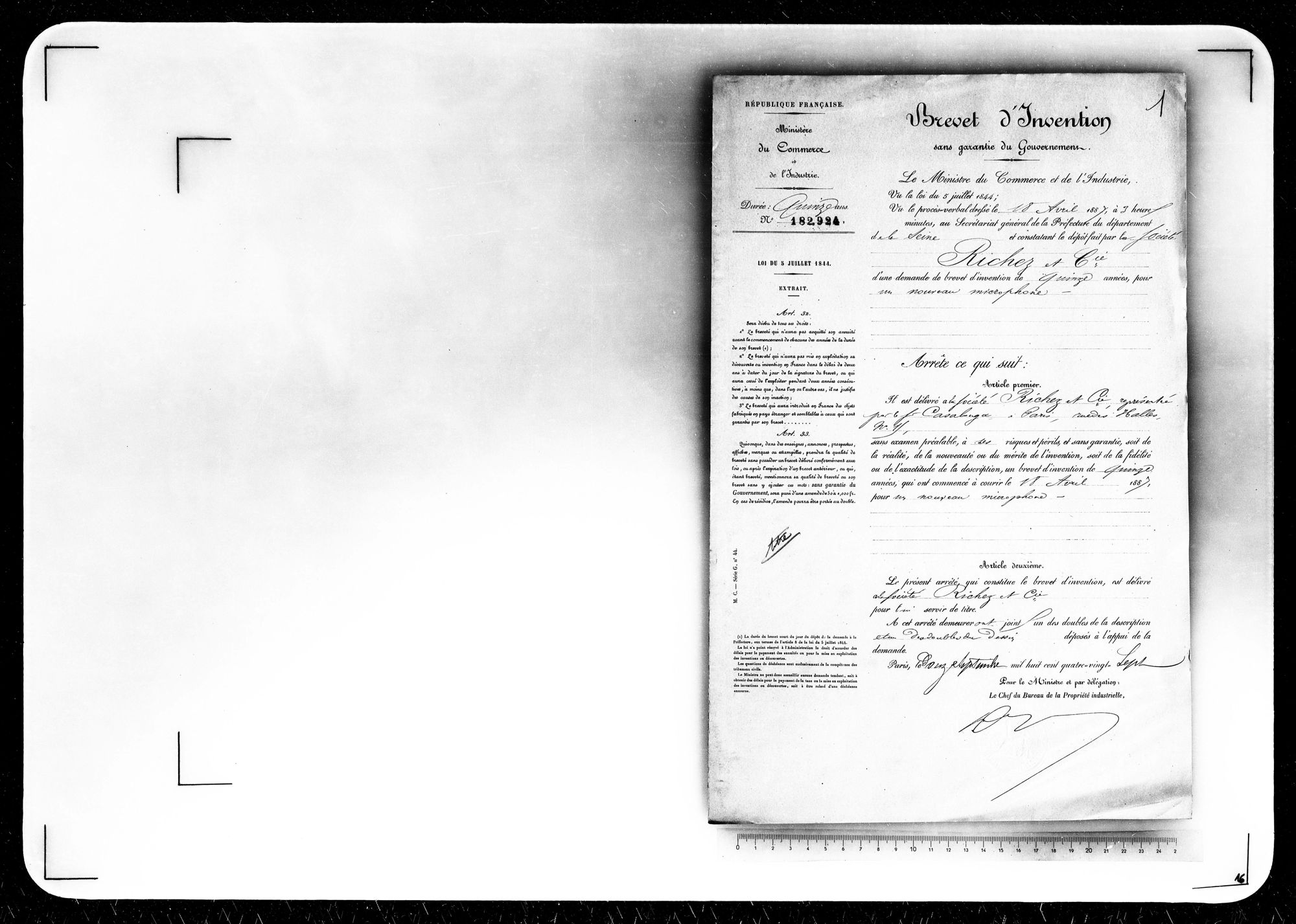 - Brevet d'invention de 15 ans