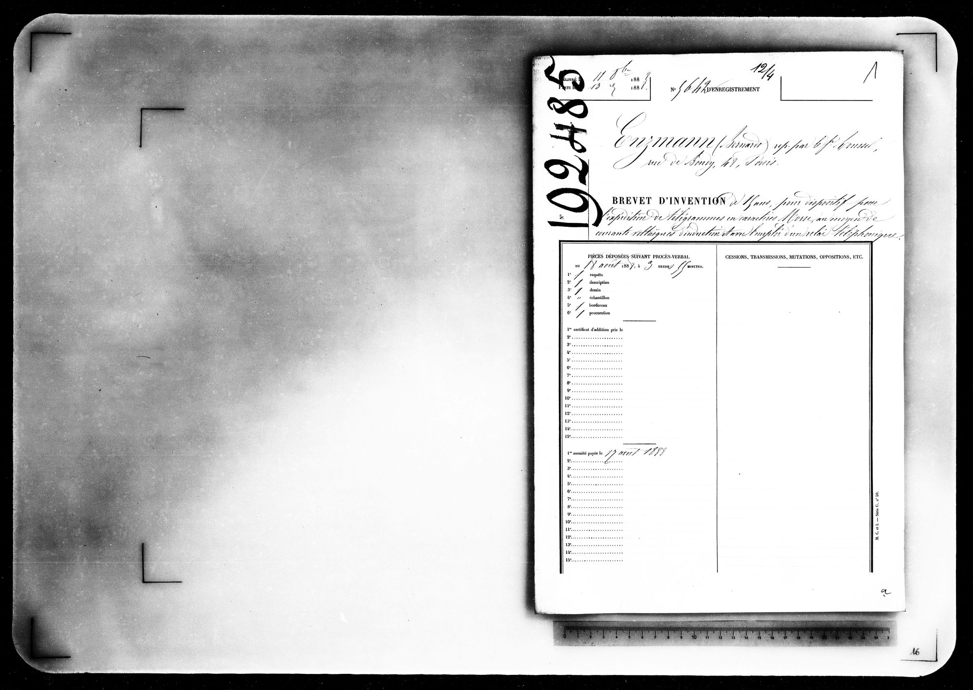 - Brevet d'invention de 15 ans