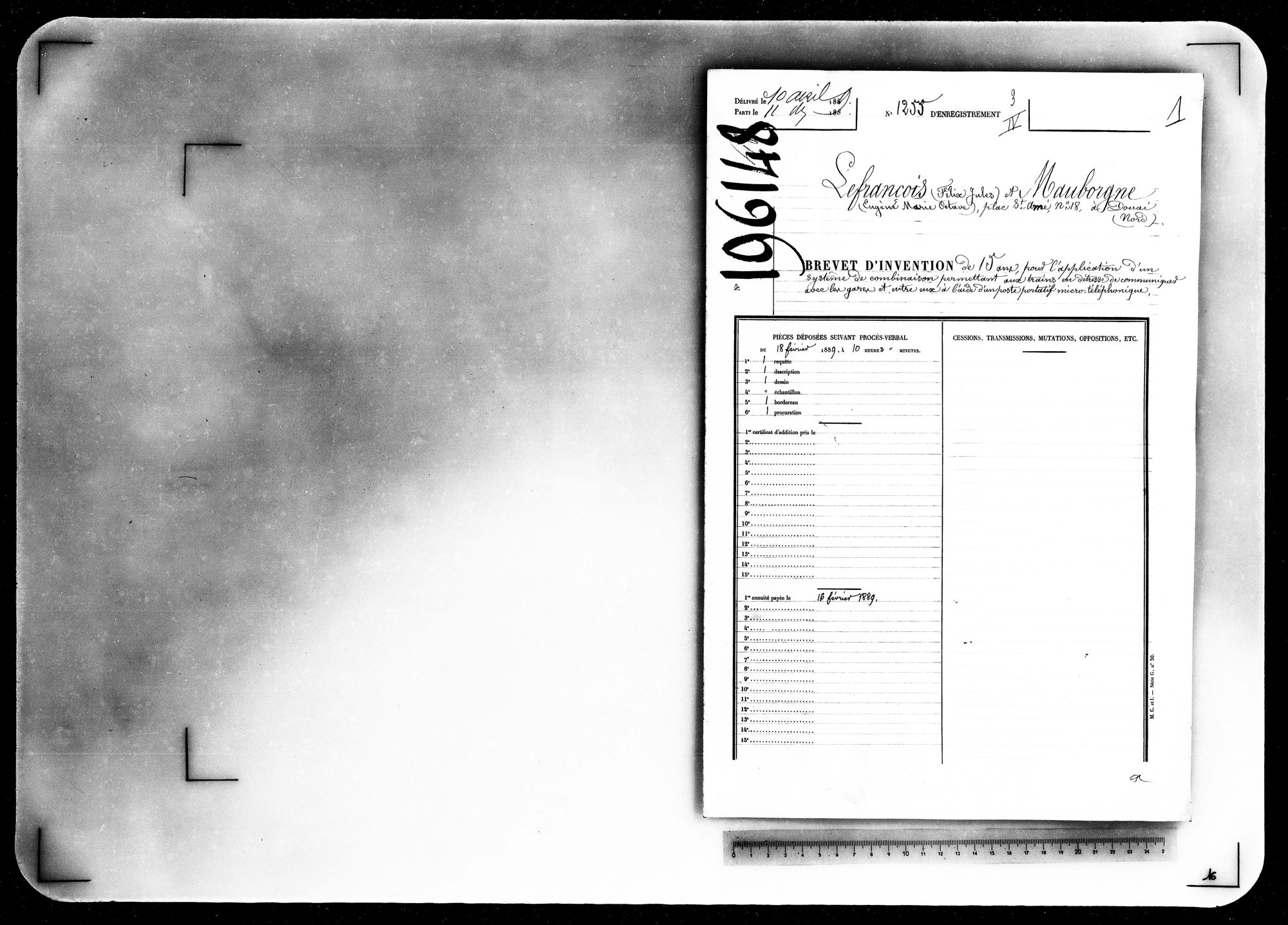 - Brevet d'invention de 15 ans