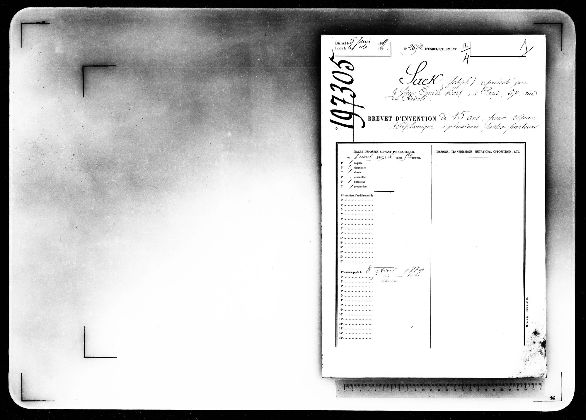 - Brevet d'invention de 15 ans
